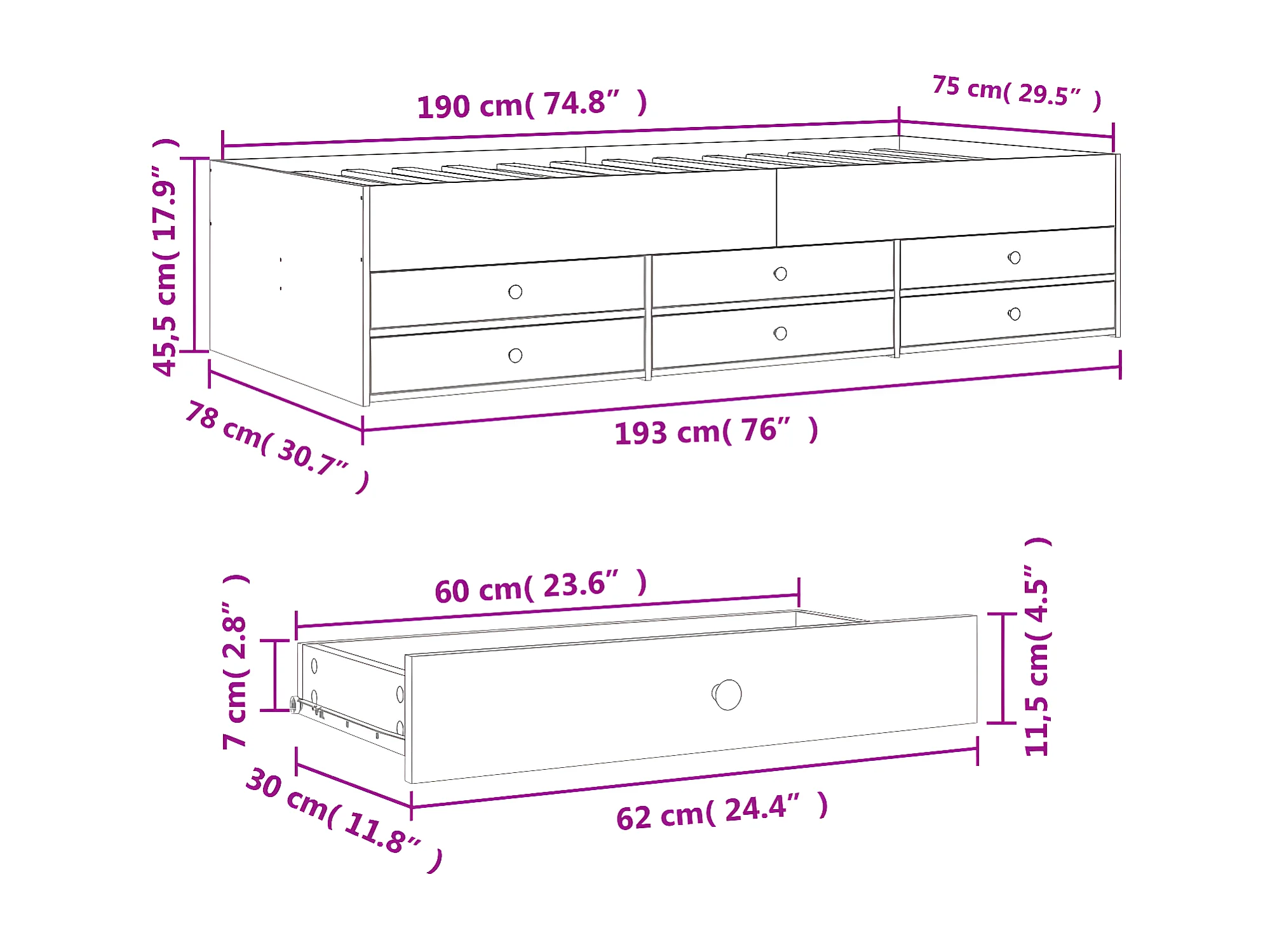 Sofá-cama com gavetas derivados de madeira carvalho castanho