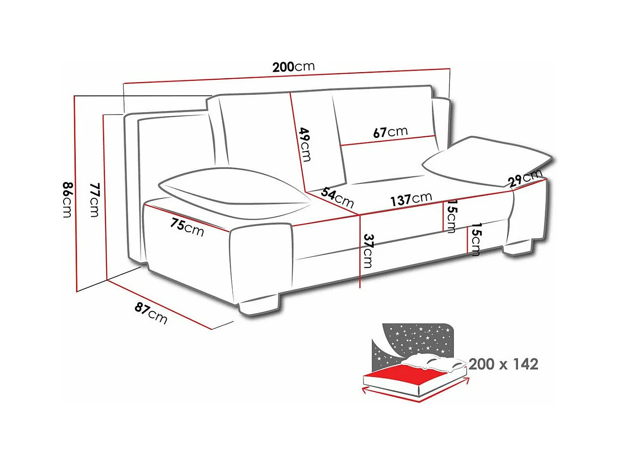 Sofá-cama Comfivo 145, Caixa para roupa de cama, 77x200x87cm