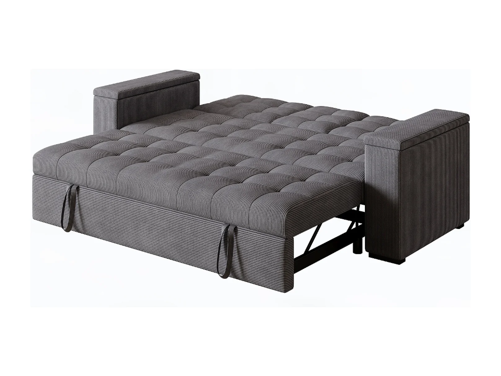 Sofá-Cama Conversível Modular de 3 Lugares em Veludo Cotelê Cinza com Armazenamento NOHO