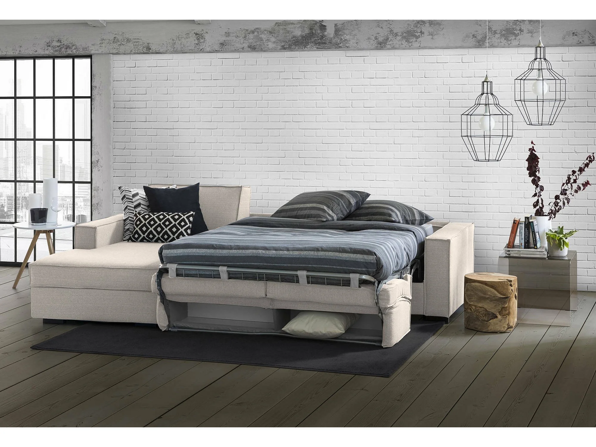 Sofá-cama Daalb, Sofá de canto, 100% Fabricado na Itália, Sofá com abertura giratória, Península de armazenamento esquerda, com braços finos, Cm 260x95h90, Taupe