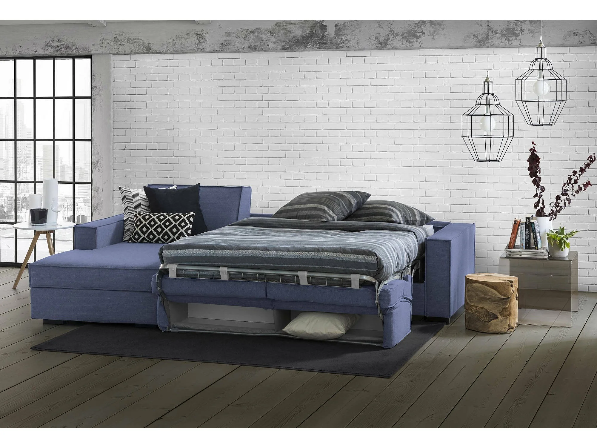 Sofá-cama Daalber, Sofá de canto, 100% Fabricado na Itália, Sofá com abertura giratória, Península de armazenamento esquerda, com braços padrão, 280x95h90 cm, Azul