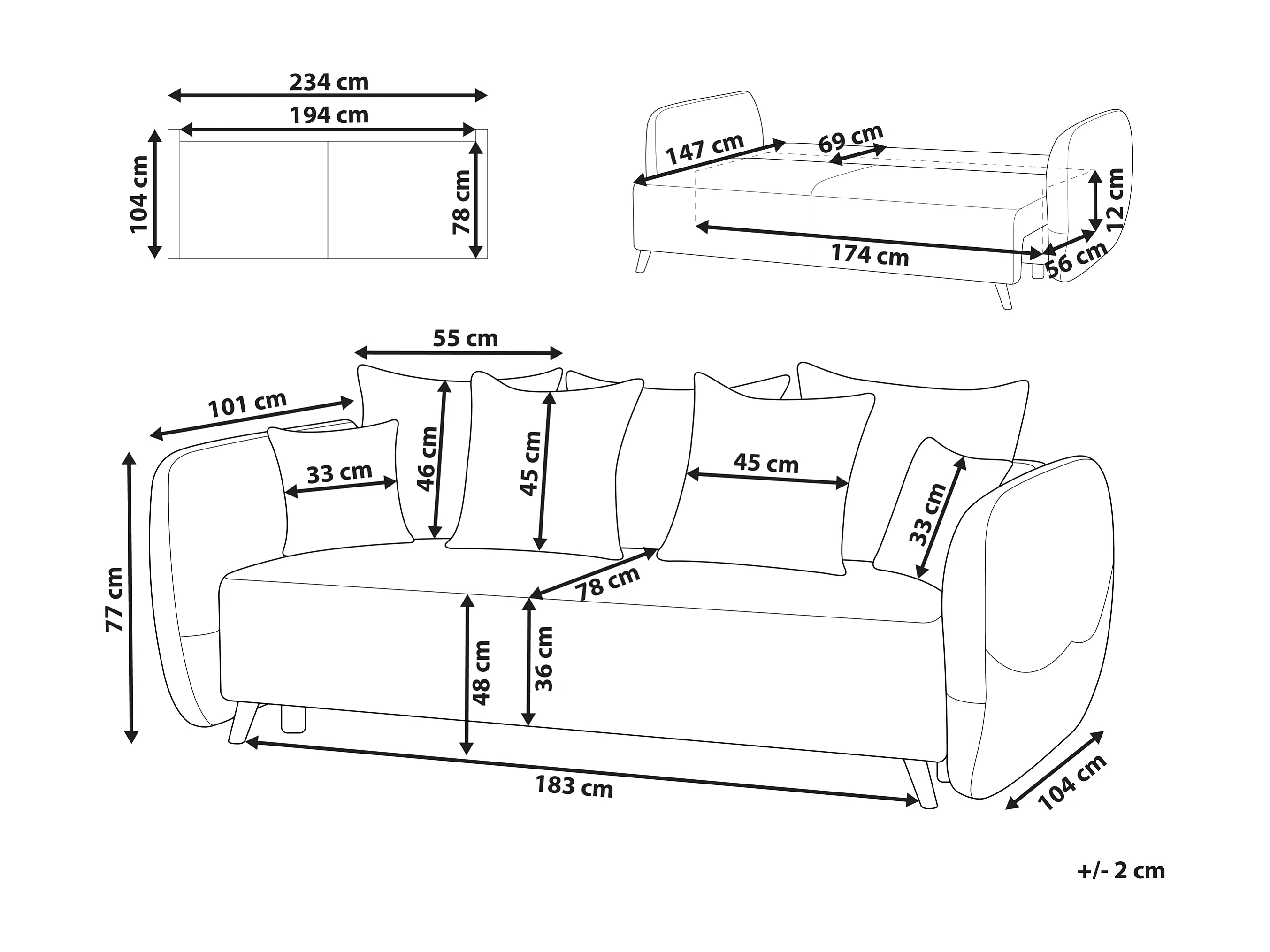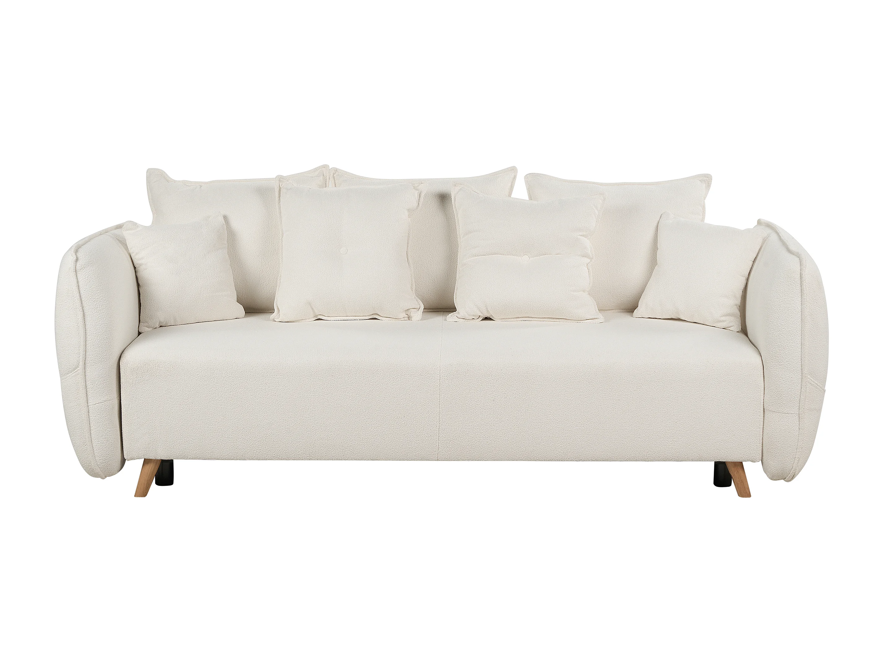 Sofá-cama de 2 lugares com arrumação em tecido bouclé branco VALLANES