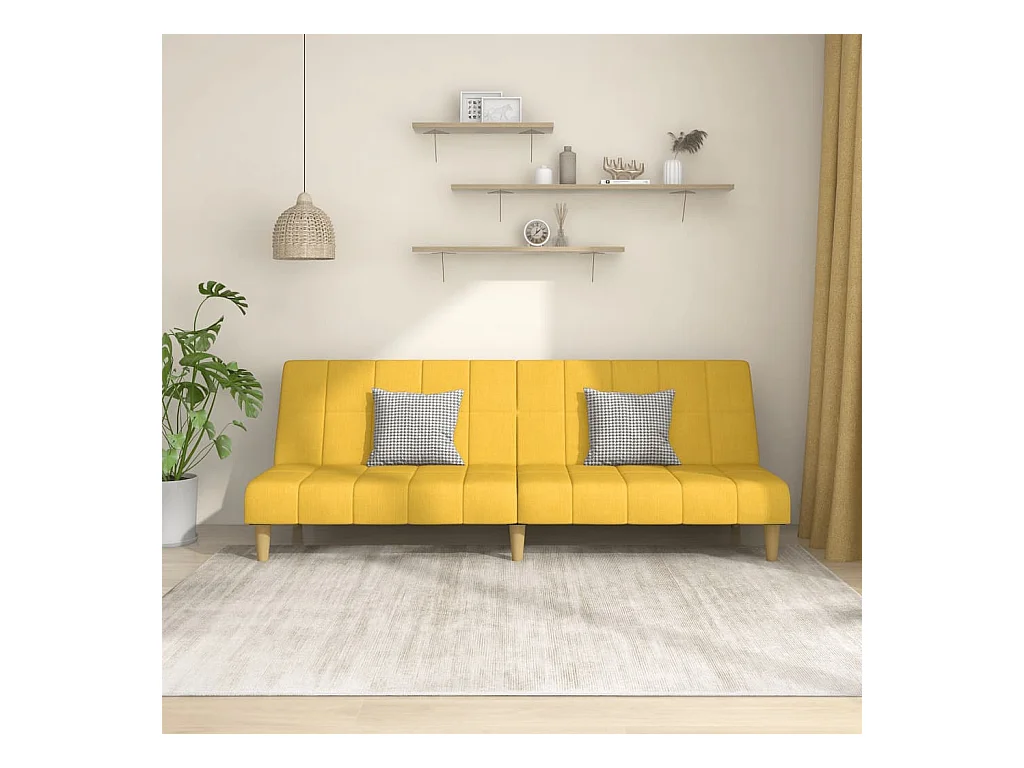 Sofá-cama de 2 lugares tecido amarelo