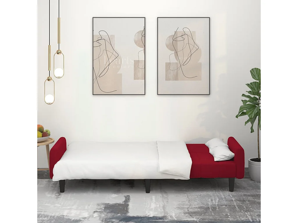 Sofá-cama de 2 lugares veludo vermelho tinto