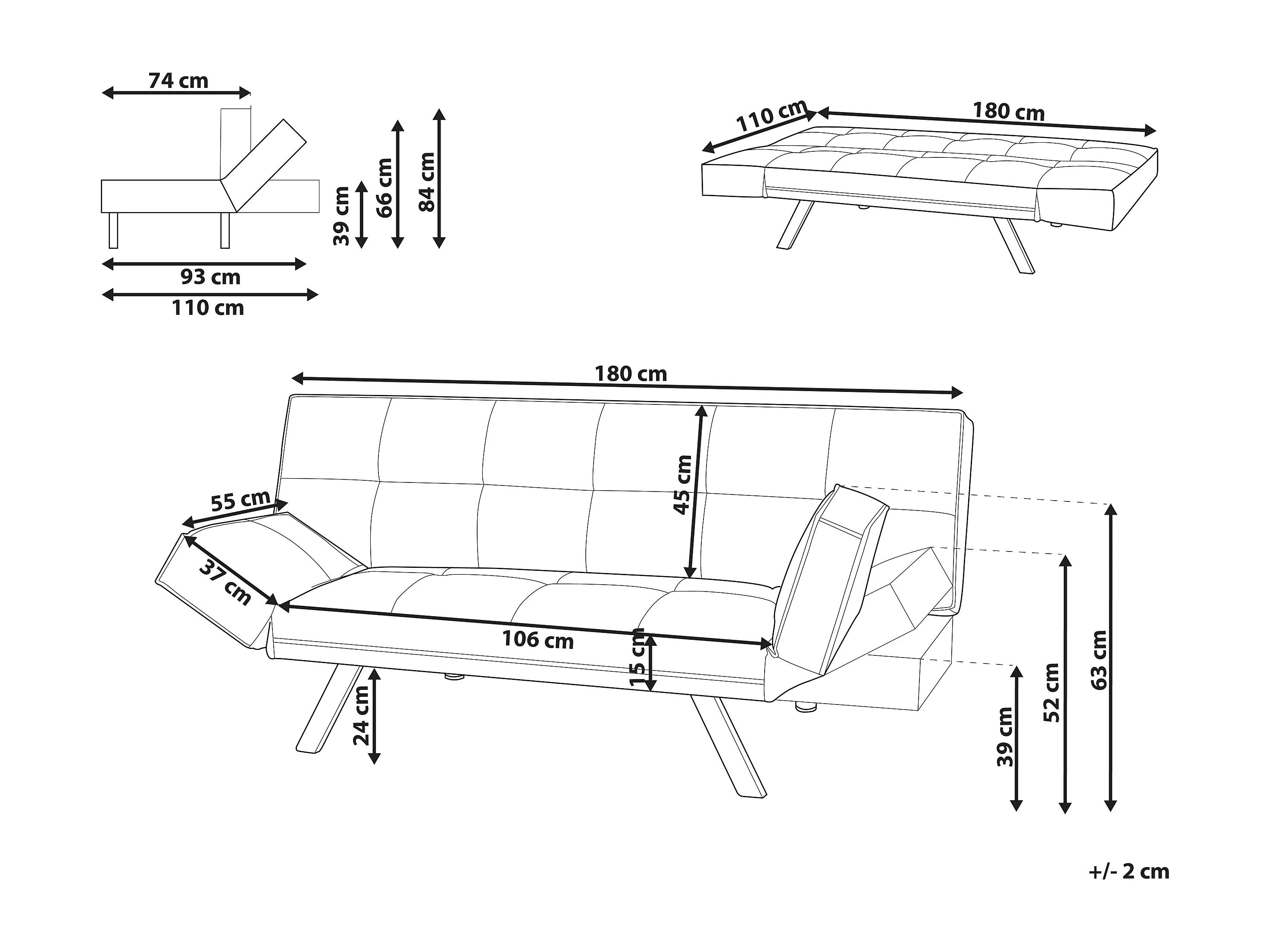 Sofá-cama BRISTOL Tecido Castanho 3 lugares