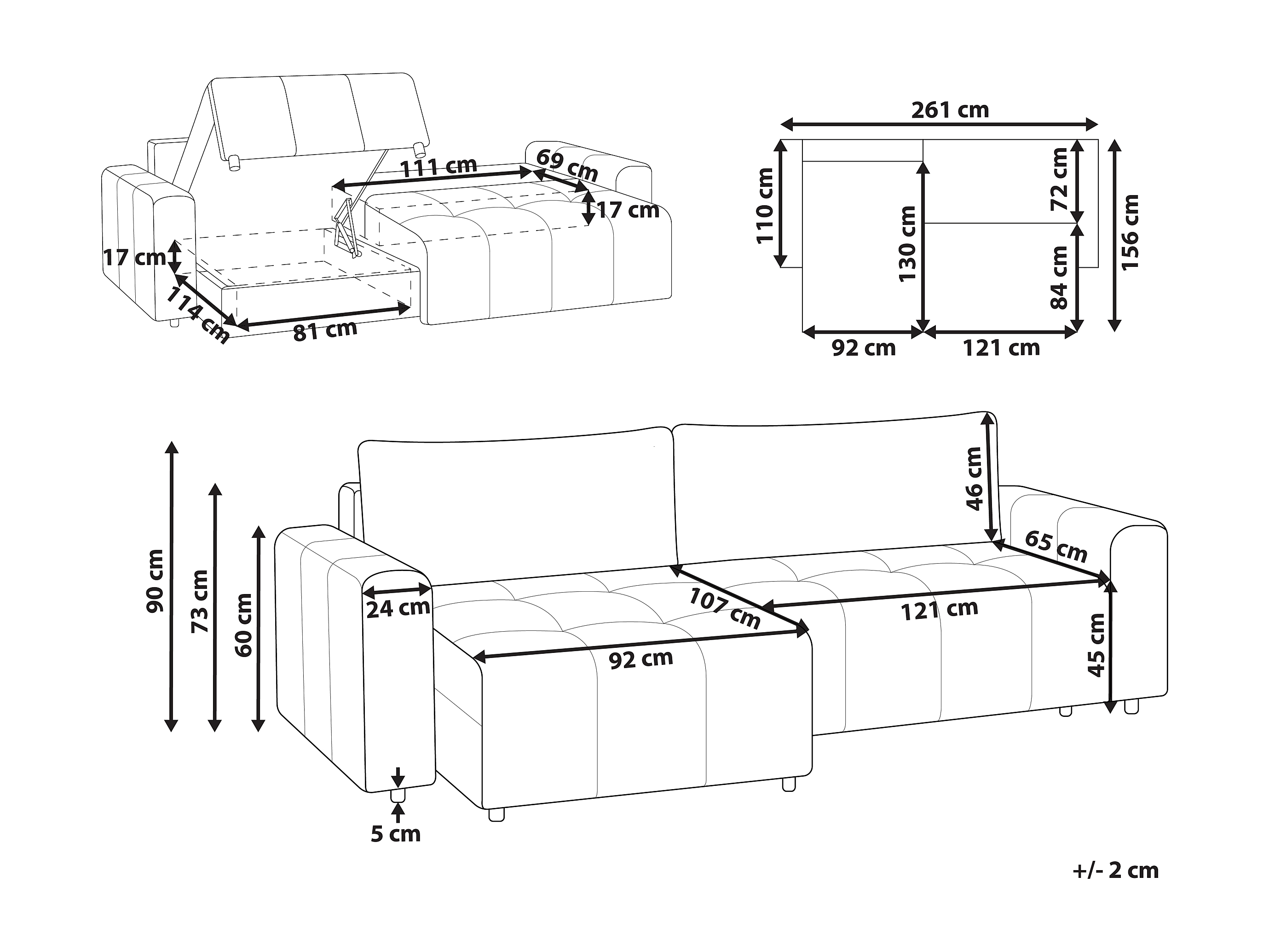 Sofá-cama de canto INNVIK Tecido Cinzento claro com arrumação 3 lugares à direita