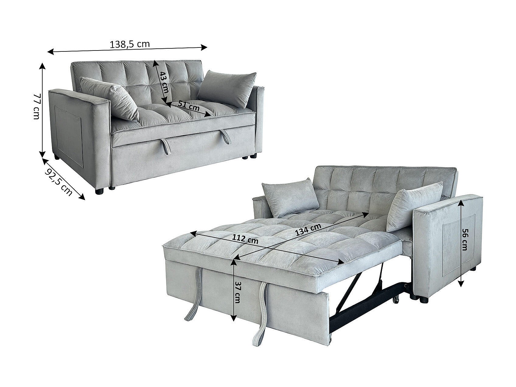 Sofá-cama de Casal Fuji 138cm, preto em veludo