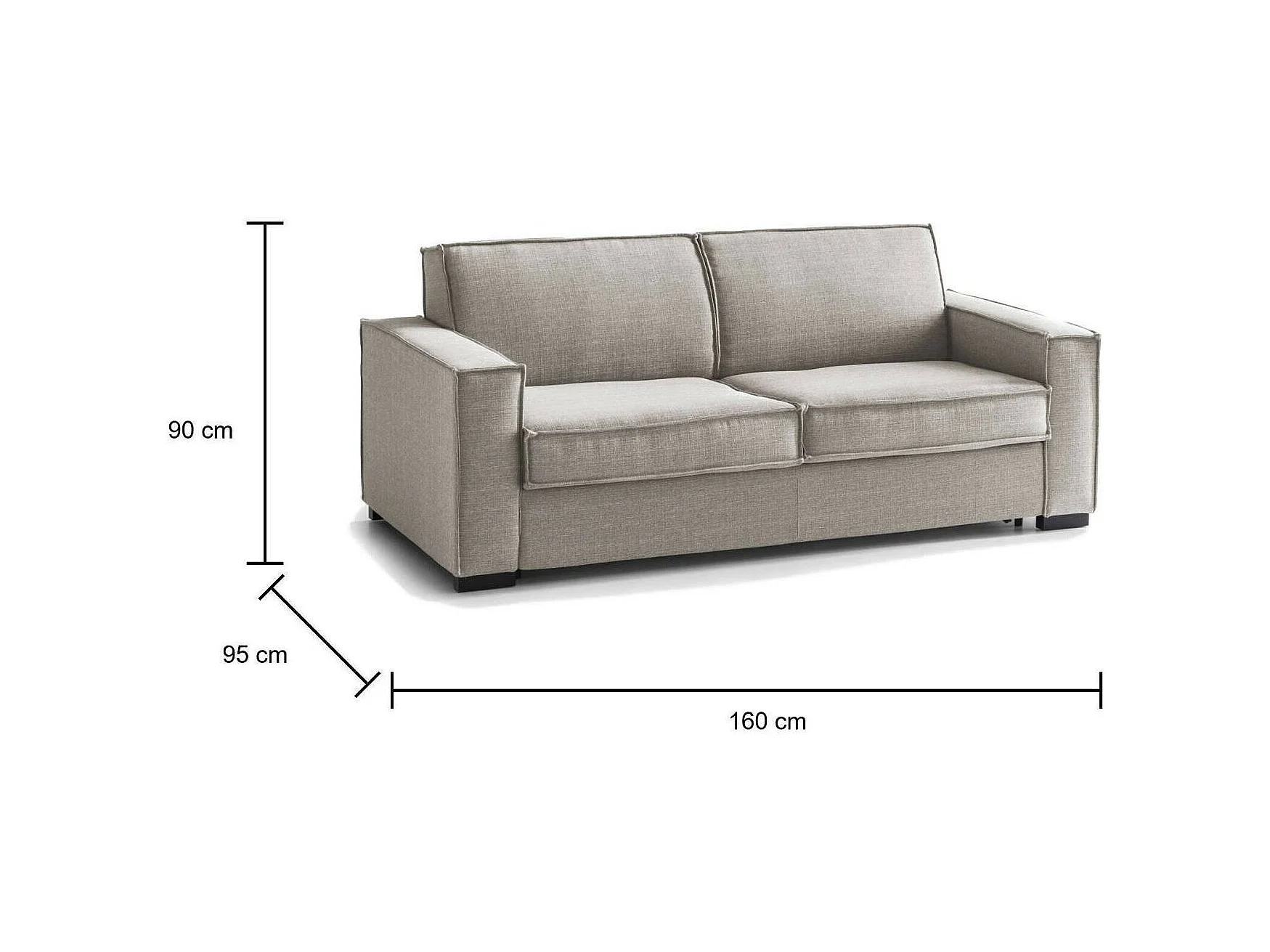 Sofá-cama Dmarull, sofá de 2 lugares, 100% Fabricado na Itália, Sofá da sala com abertura giratória, em tecido acolchoado, com braços finos, Cm 160x95h90, Taupe