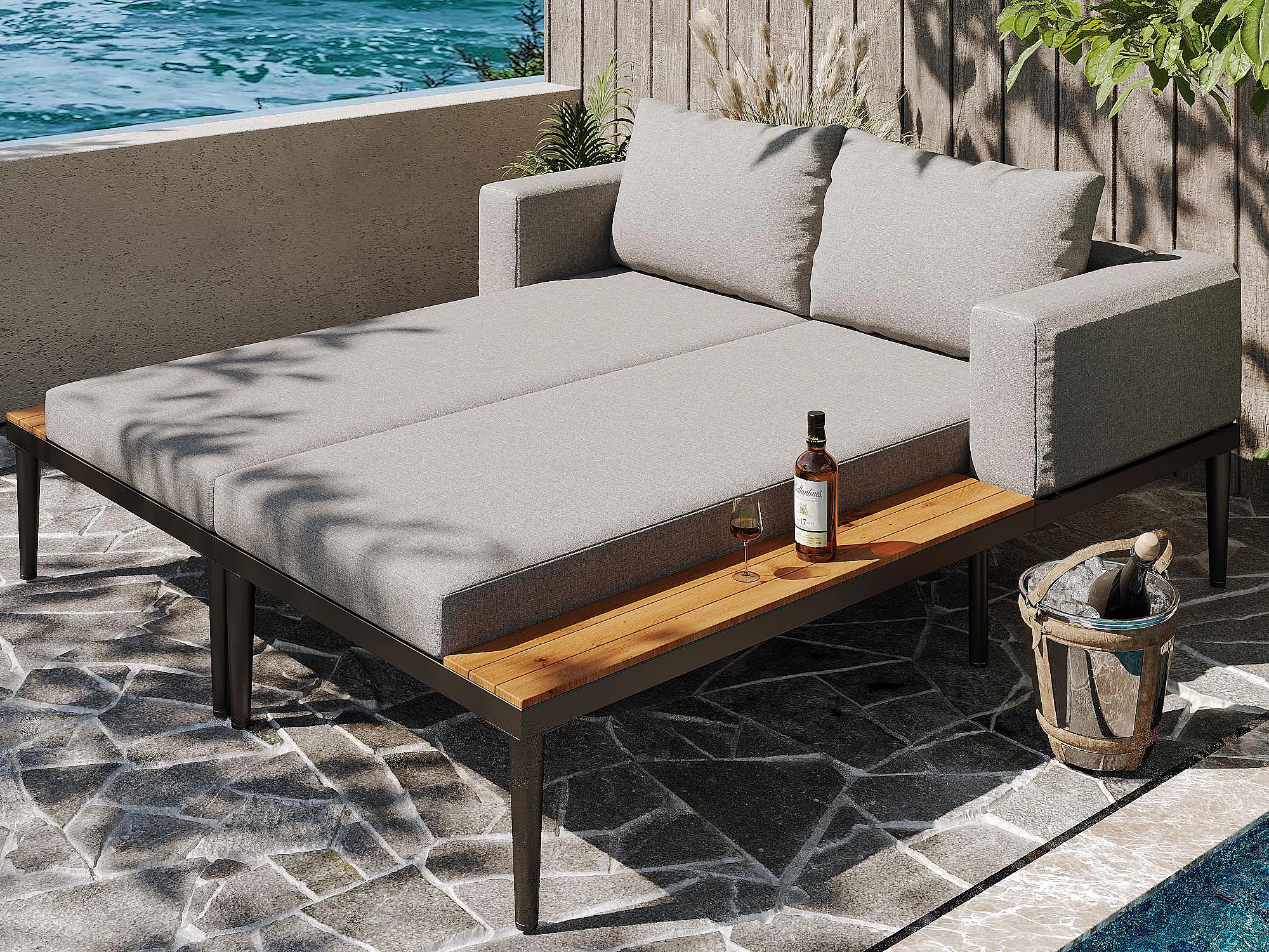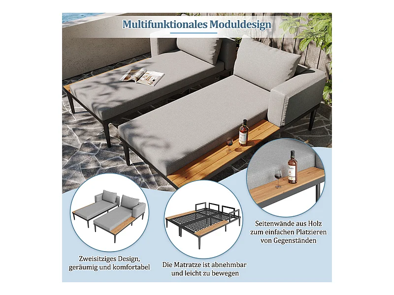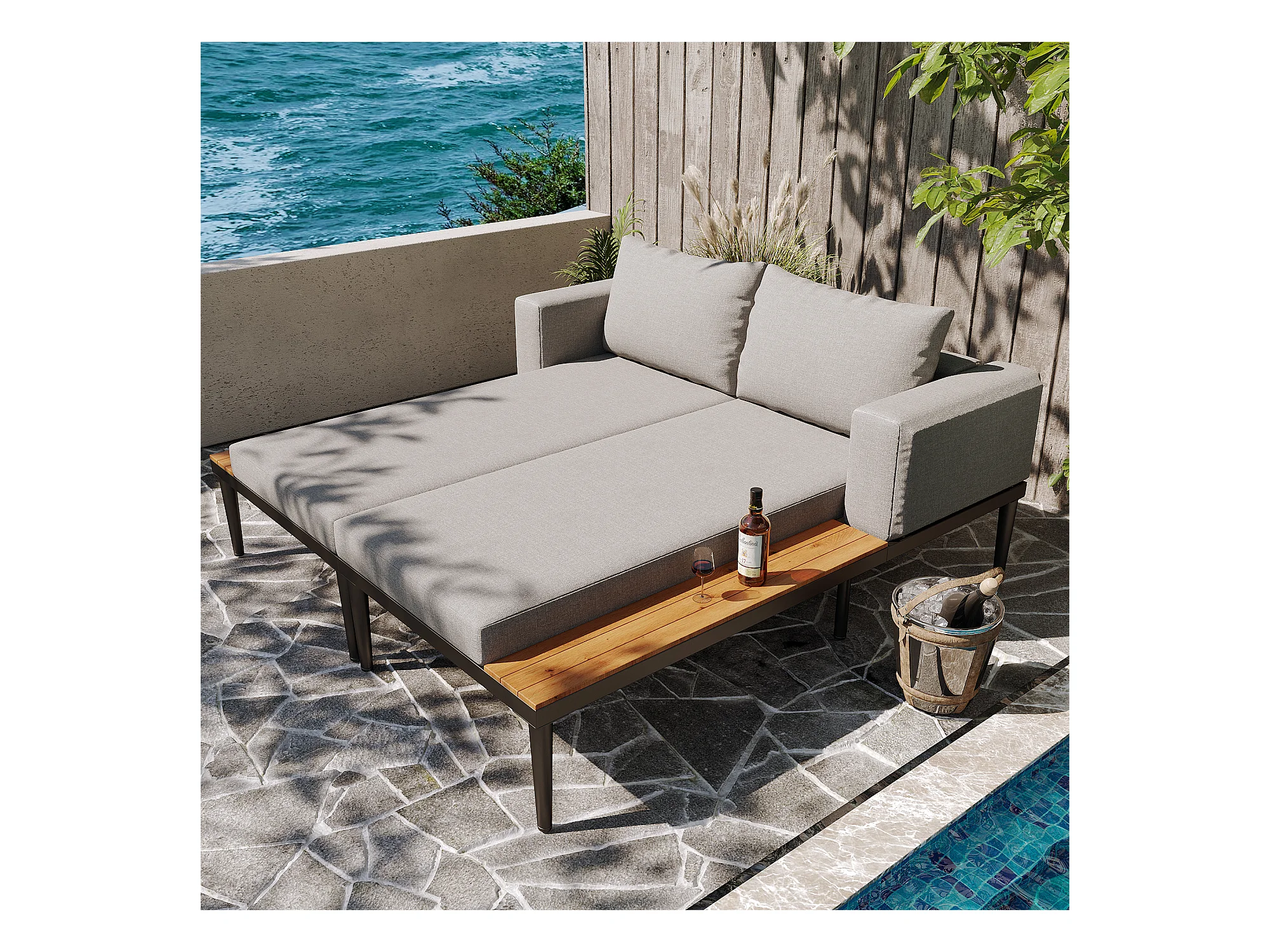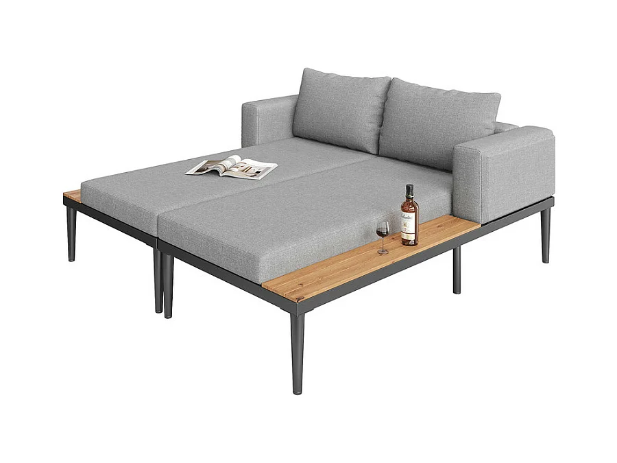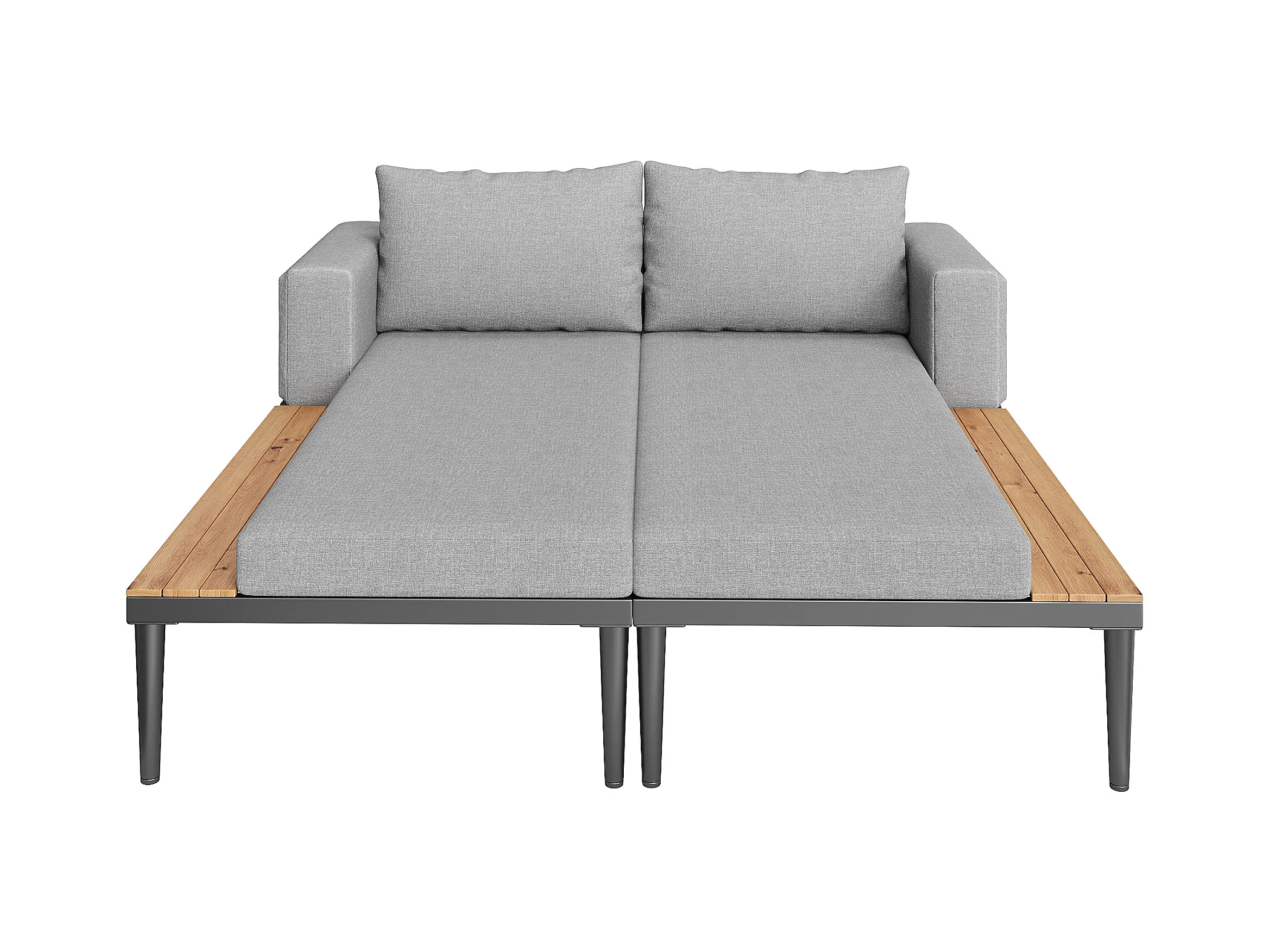 Sofá-cama duplo para terraço exterior 150x140x30cm - Sofá-cama multifuncional impermeável - Com prateleira - Metal, Poliéster - Cinza