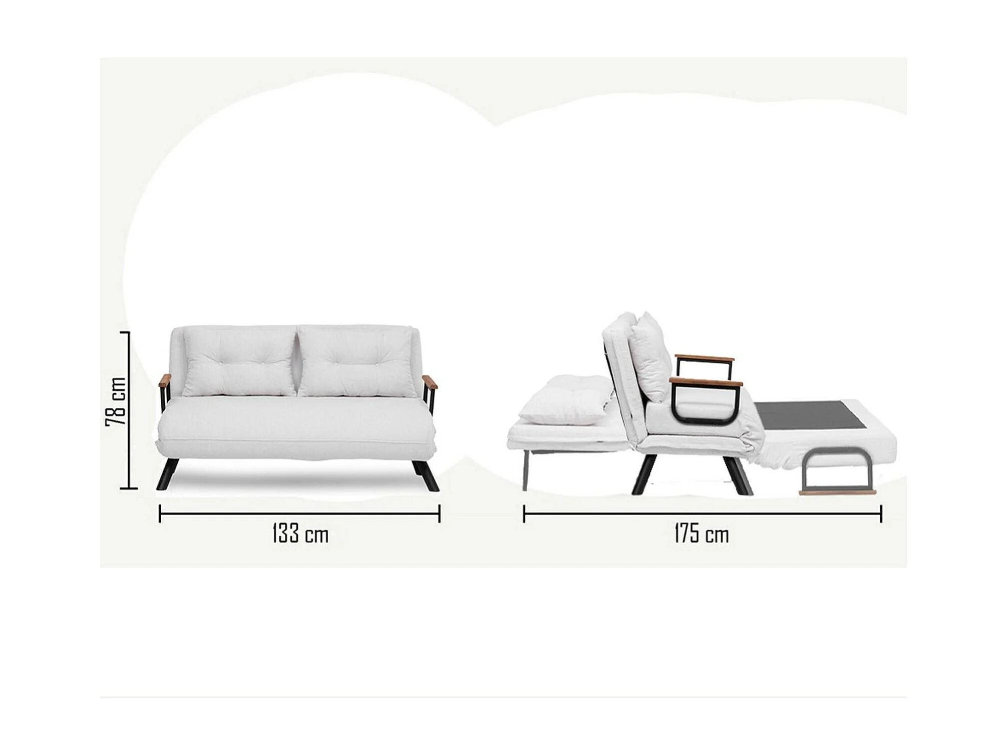 Sofá-cama Dworle de 2 lugares, Sofá convertível, Sofá de hóspedes, Poltrona-cama com arrumação, 133x78 h78 cm, Branco