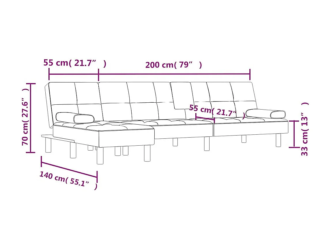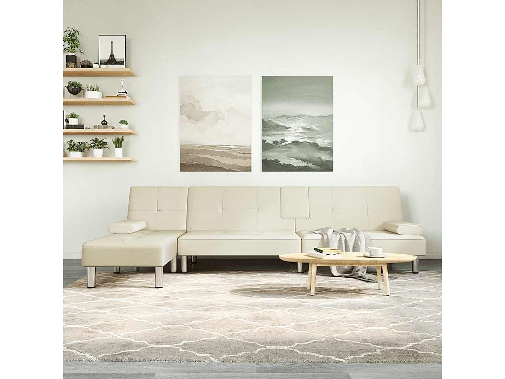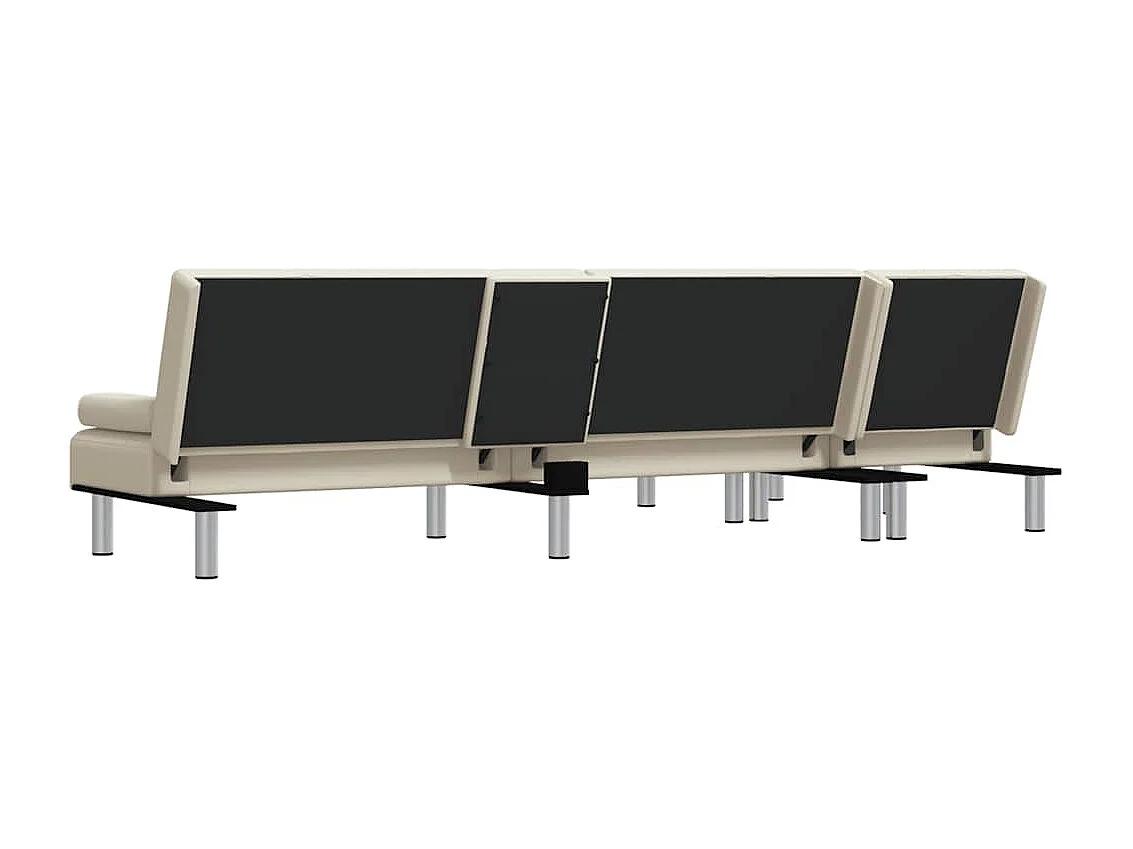 Sofá-cama em forma de L 255x140x70 cm couro artificial creme