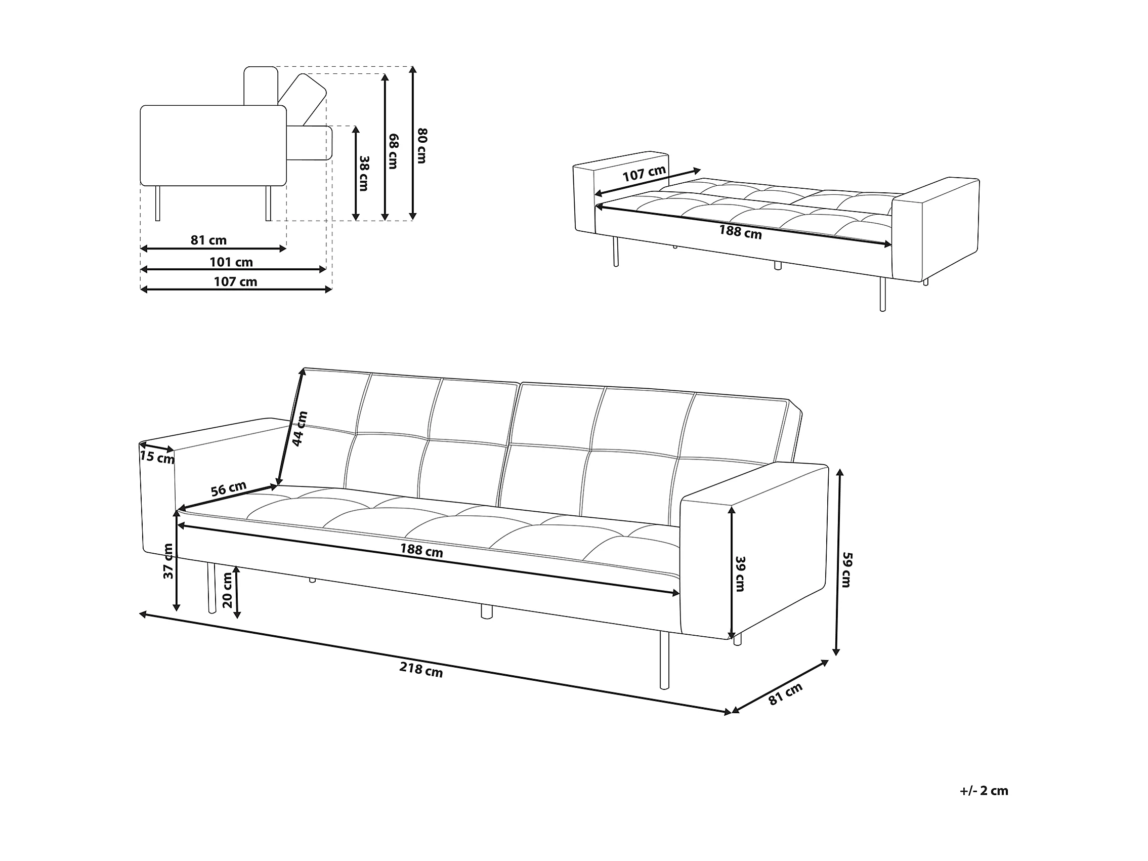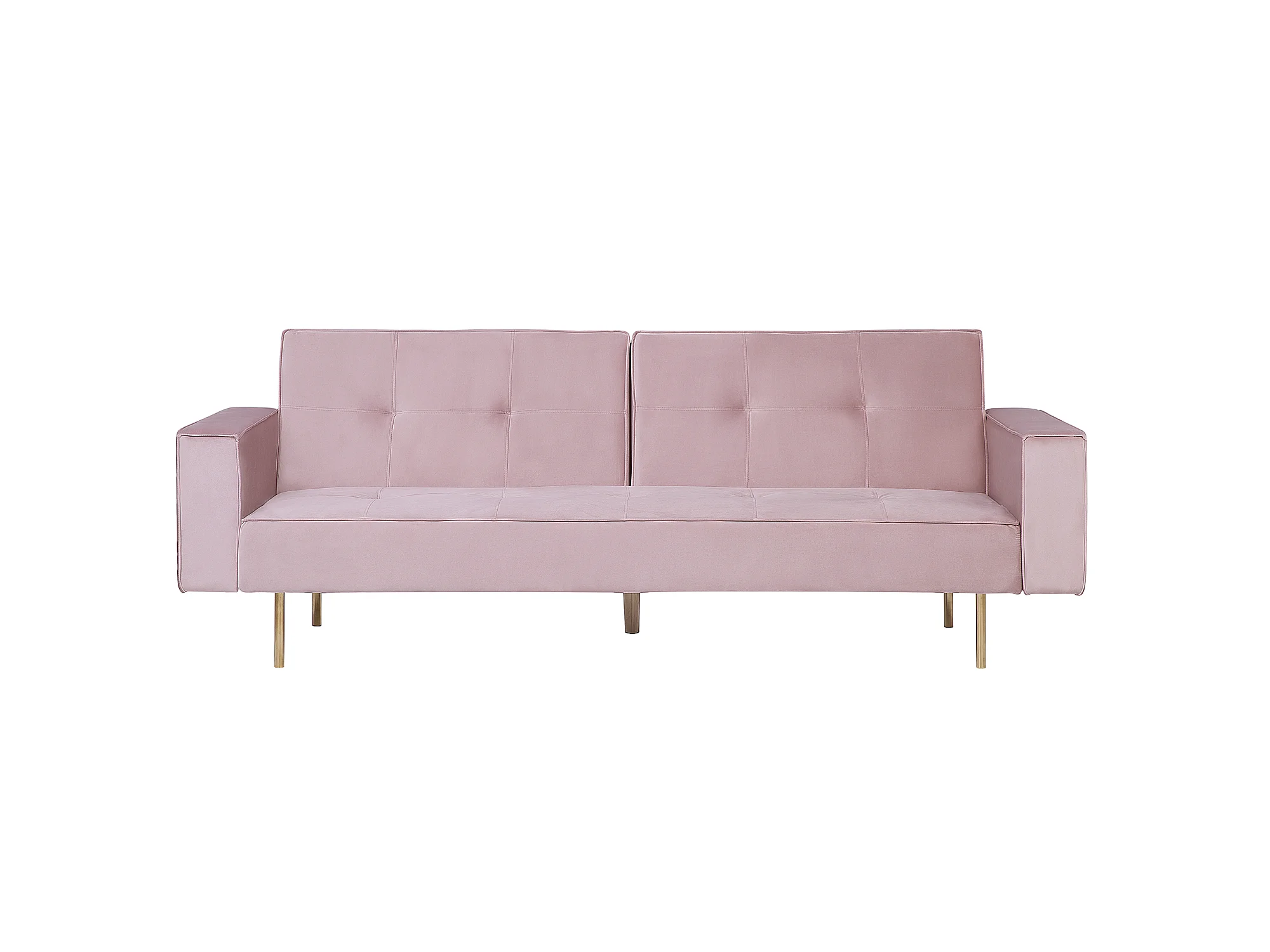 Sofá-cama VISNES Veludo Rosa 3 lugares