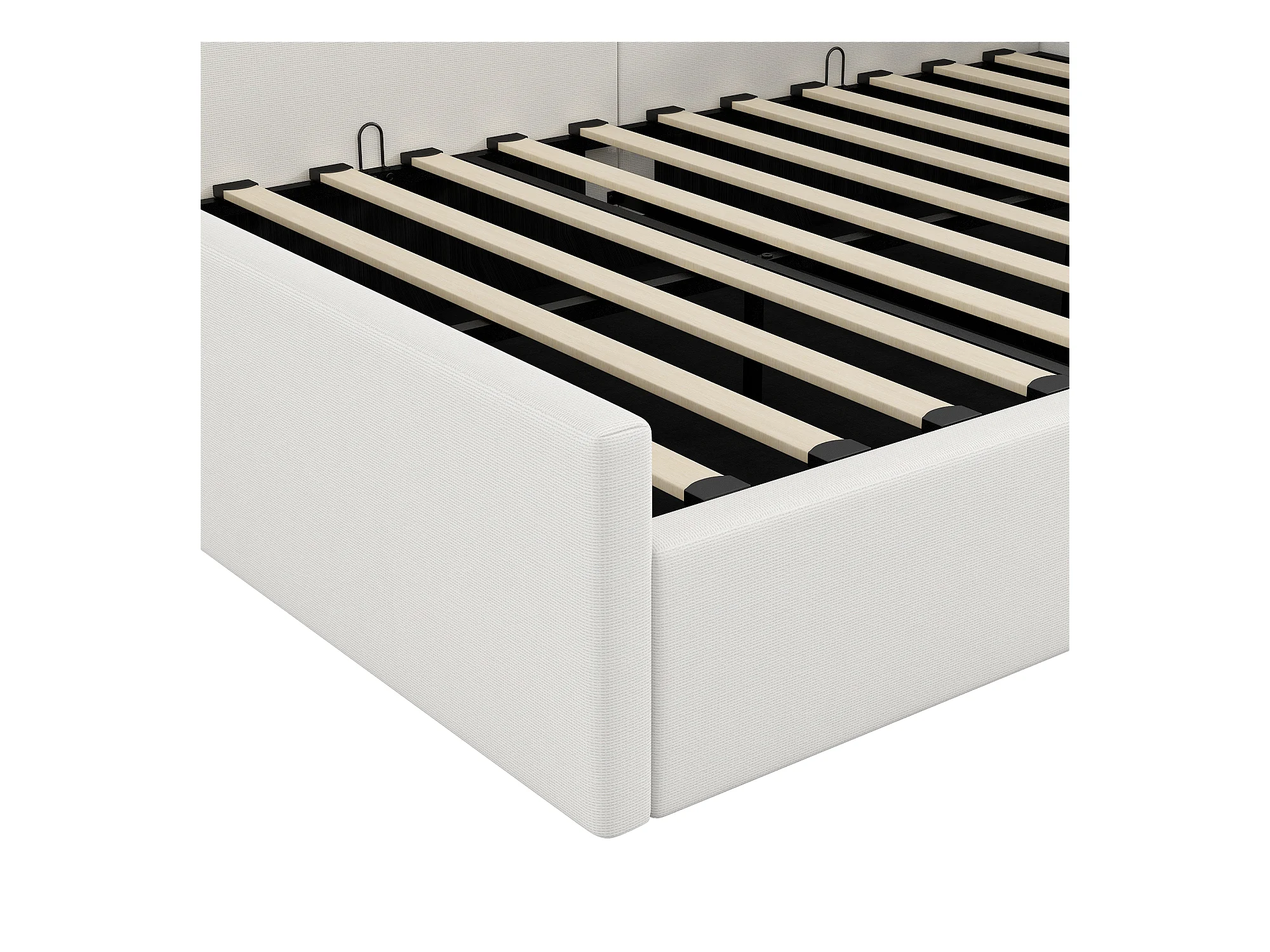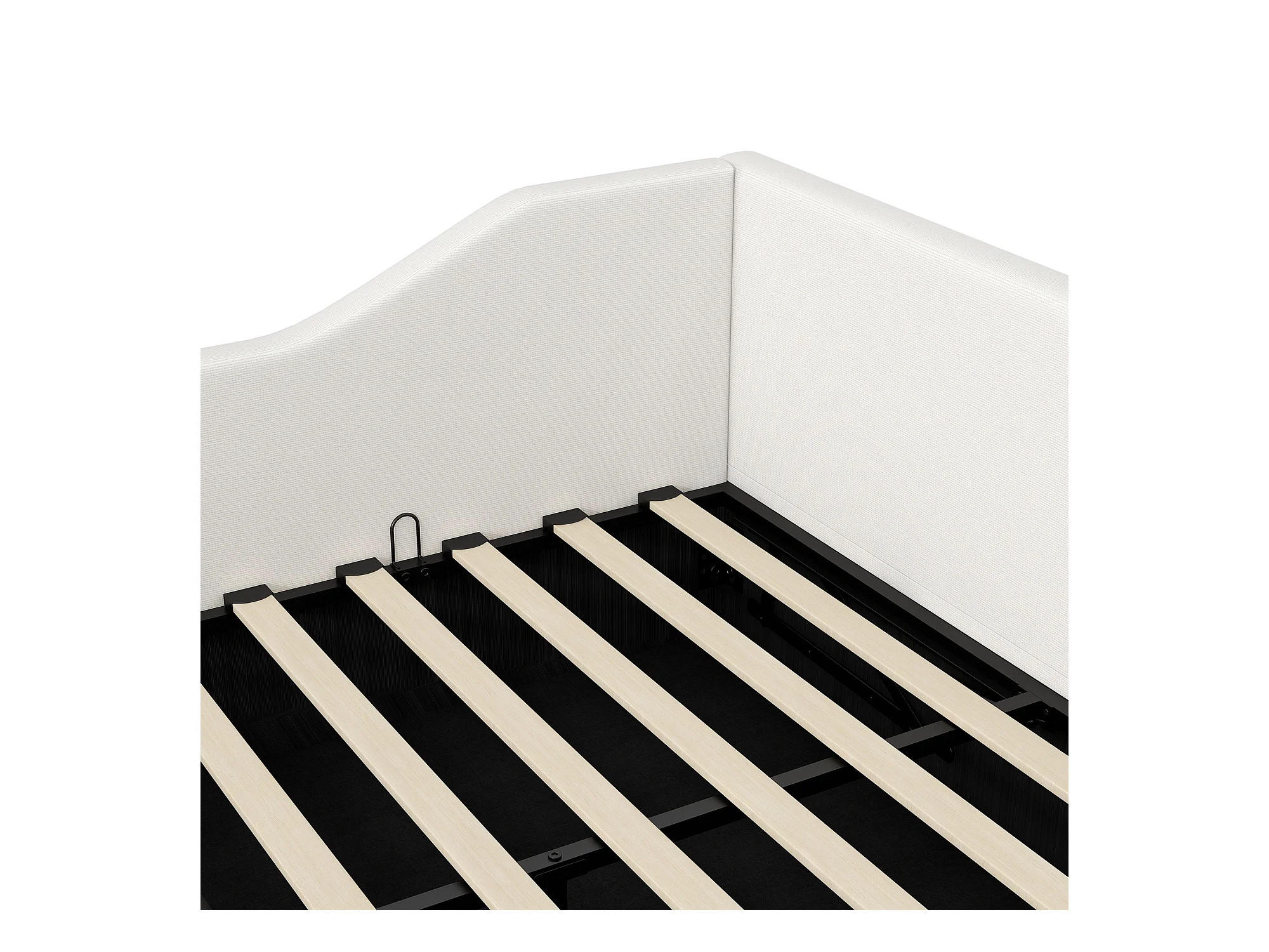 Cama de rodízio 140 x 200 cm + 90 x 190 cm - 3 gavetas - tecido de linho - base de ripas - bege