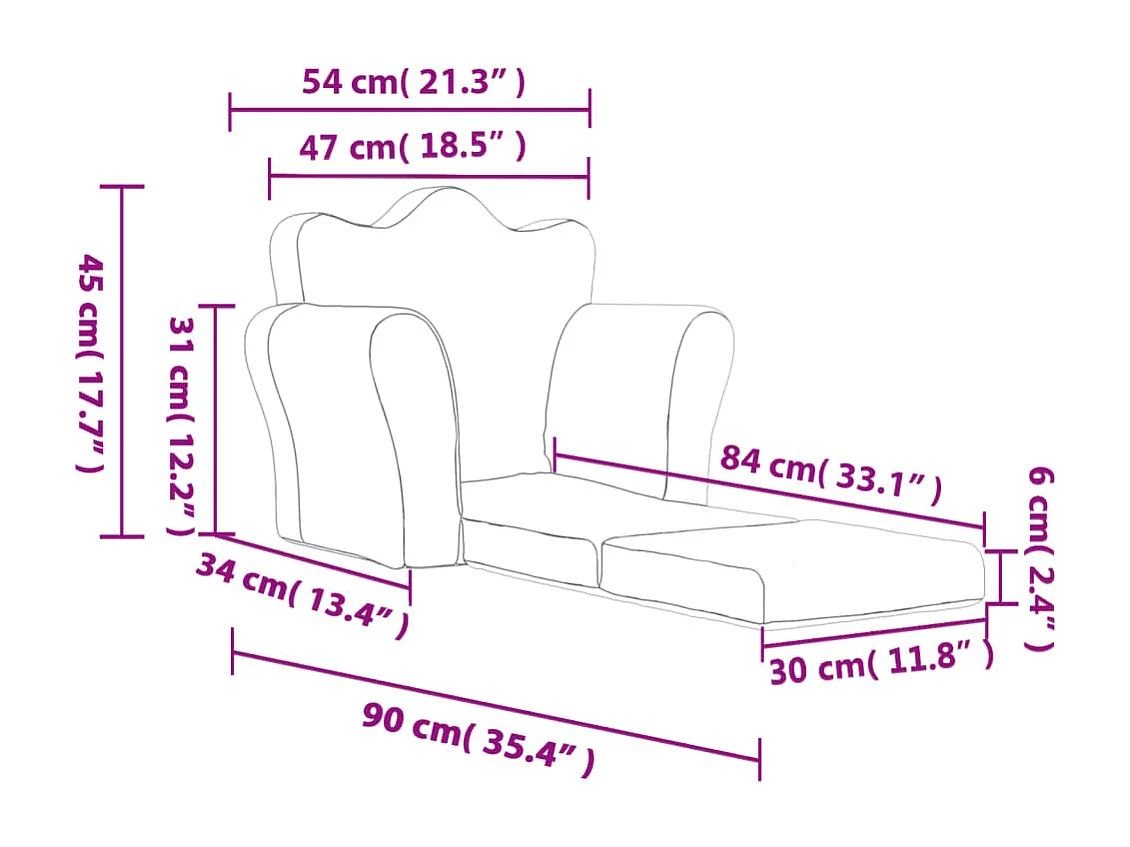 Sofá-cama infantil de pelúcia macia rosa
