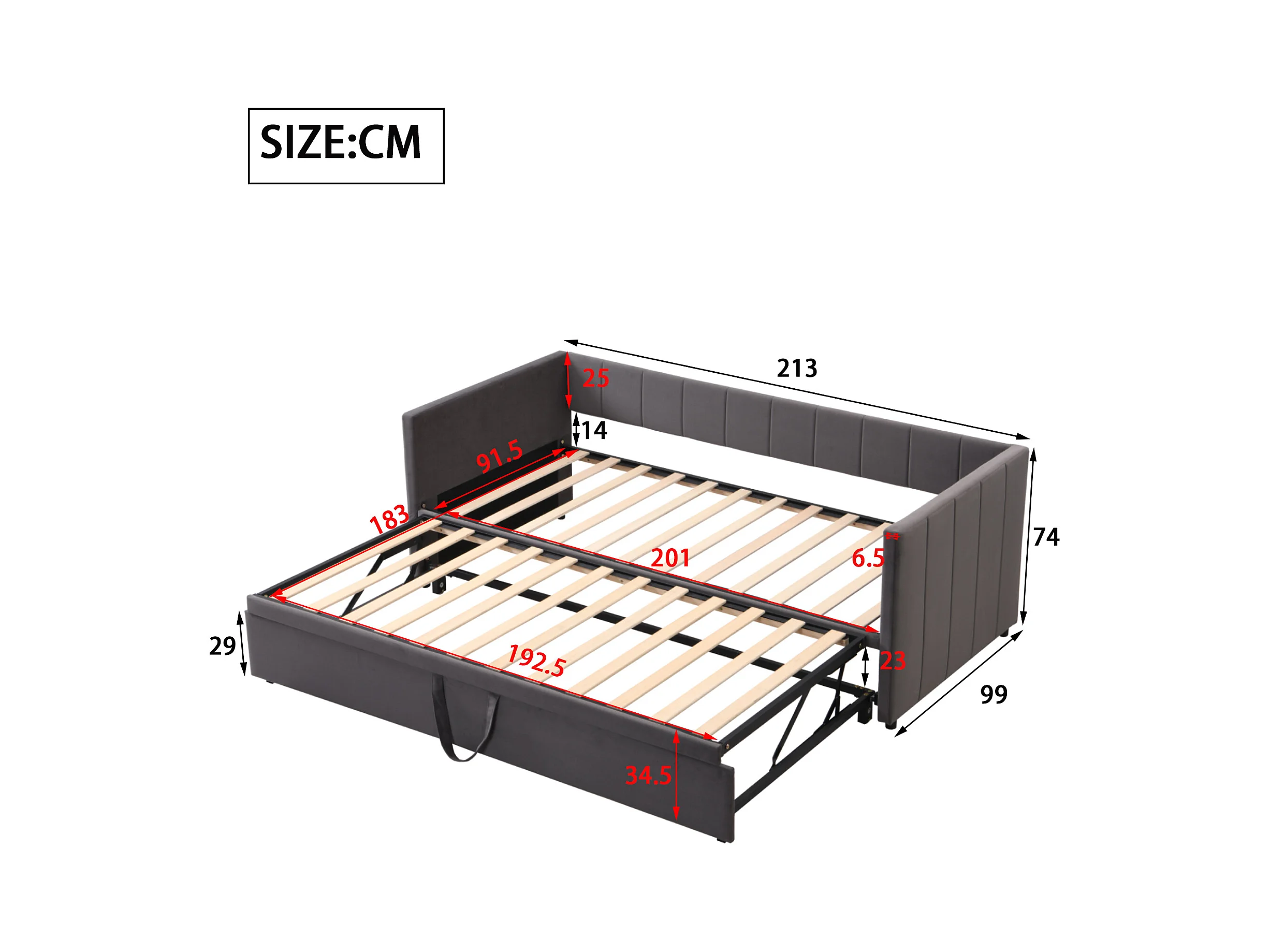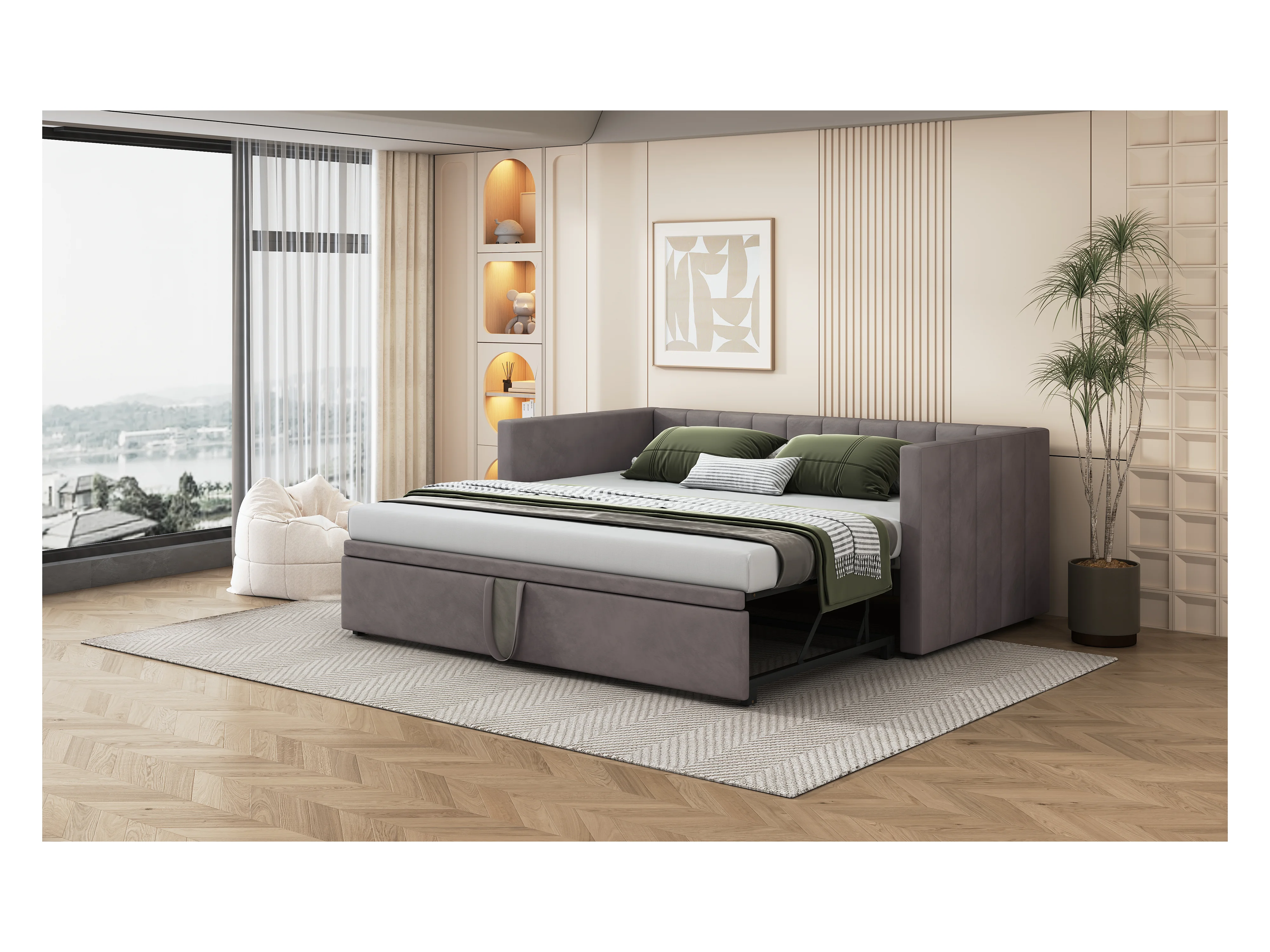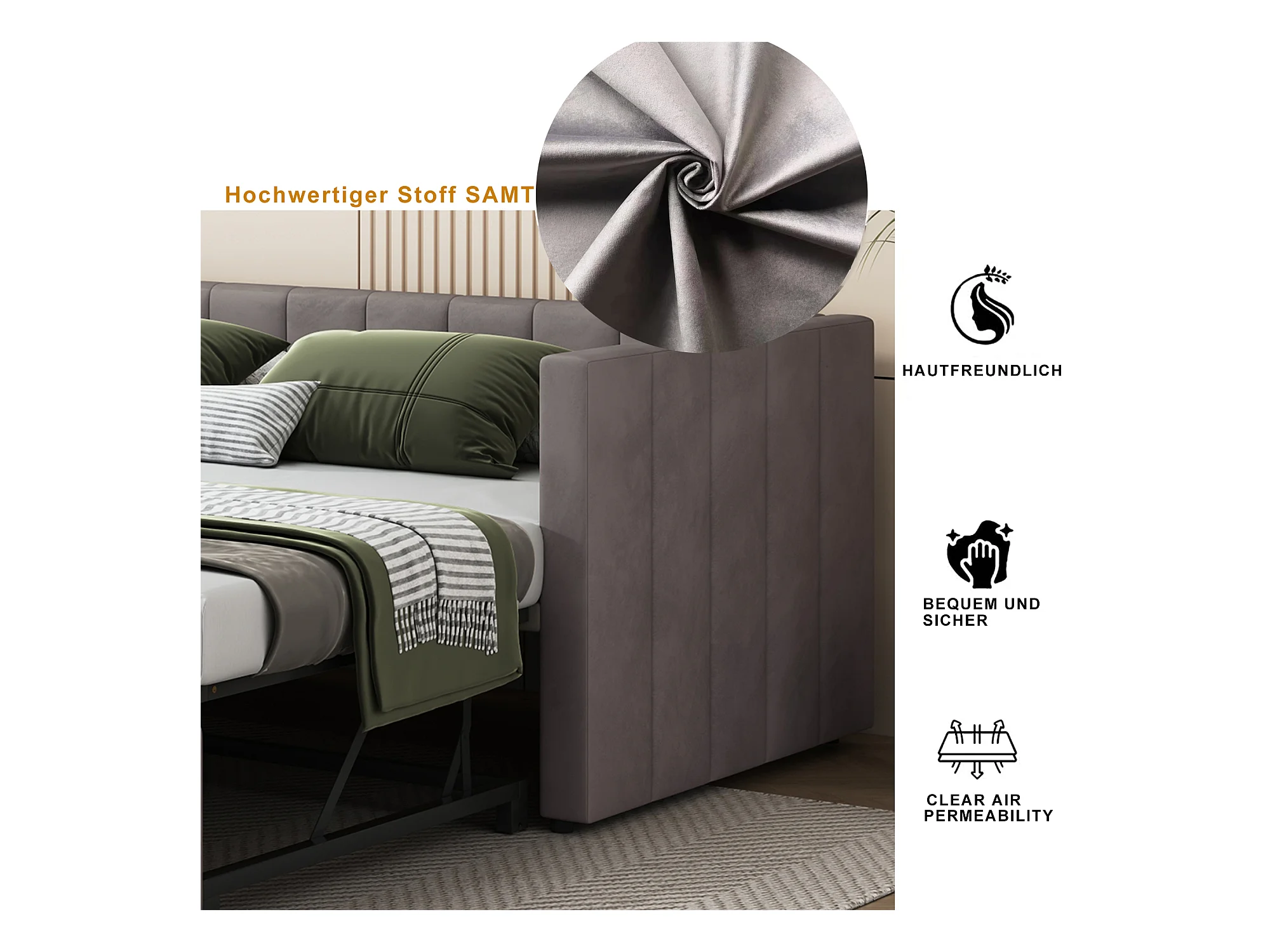Sofá-cama retrátil - 90/180 x 200 cm - com base de ripas - veludo - cinza