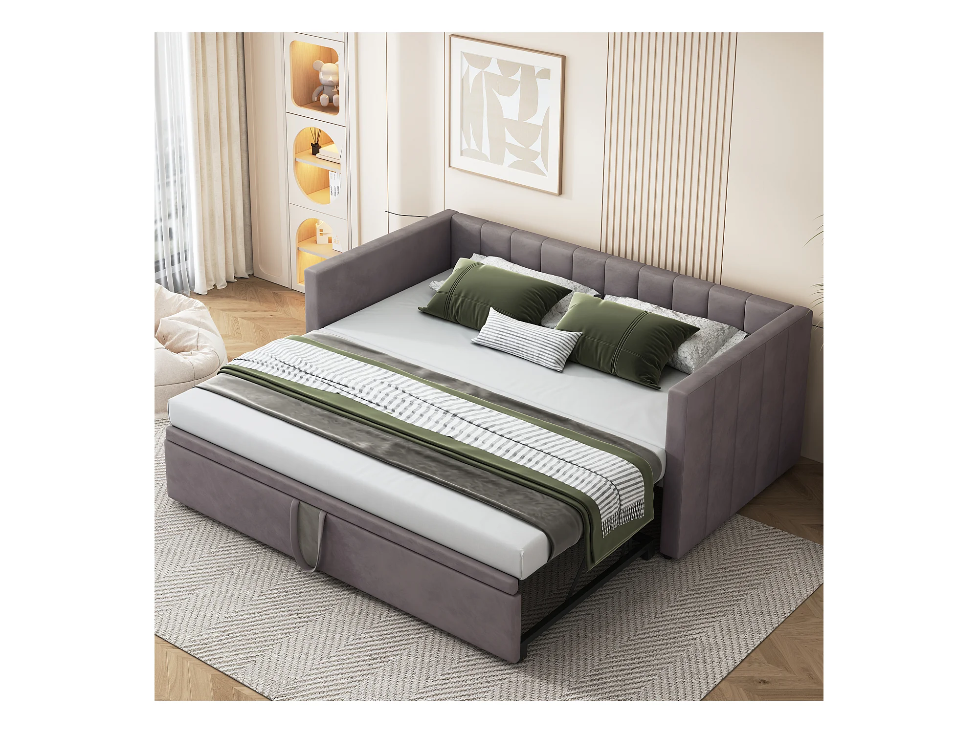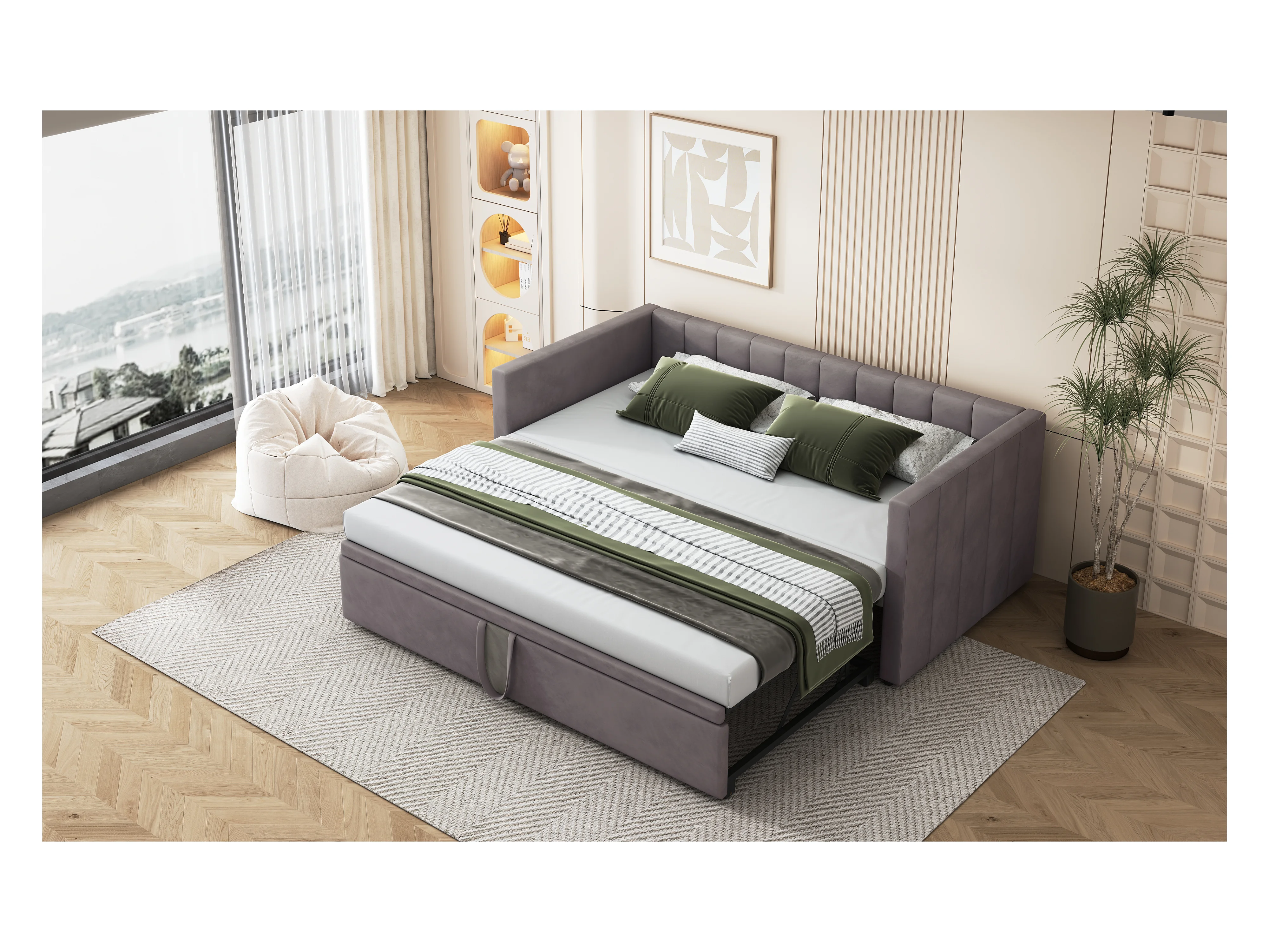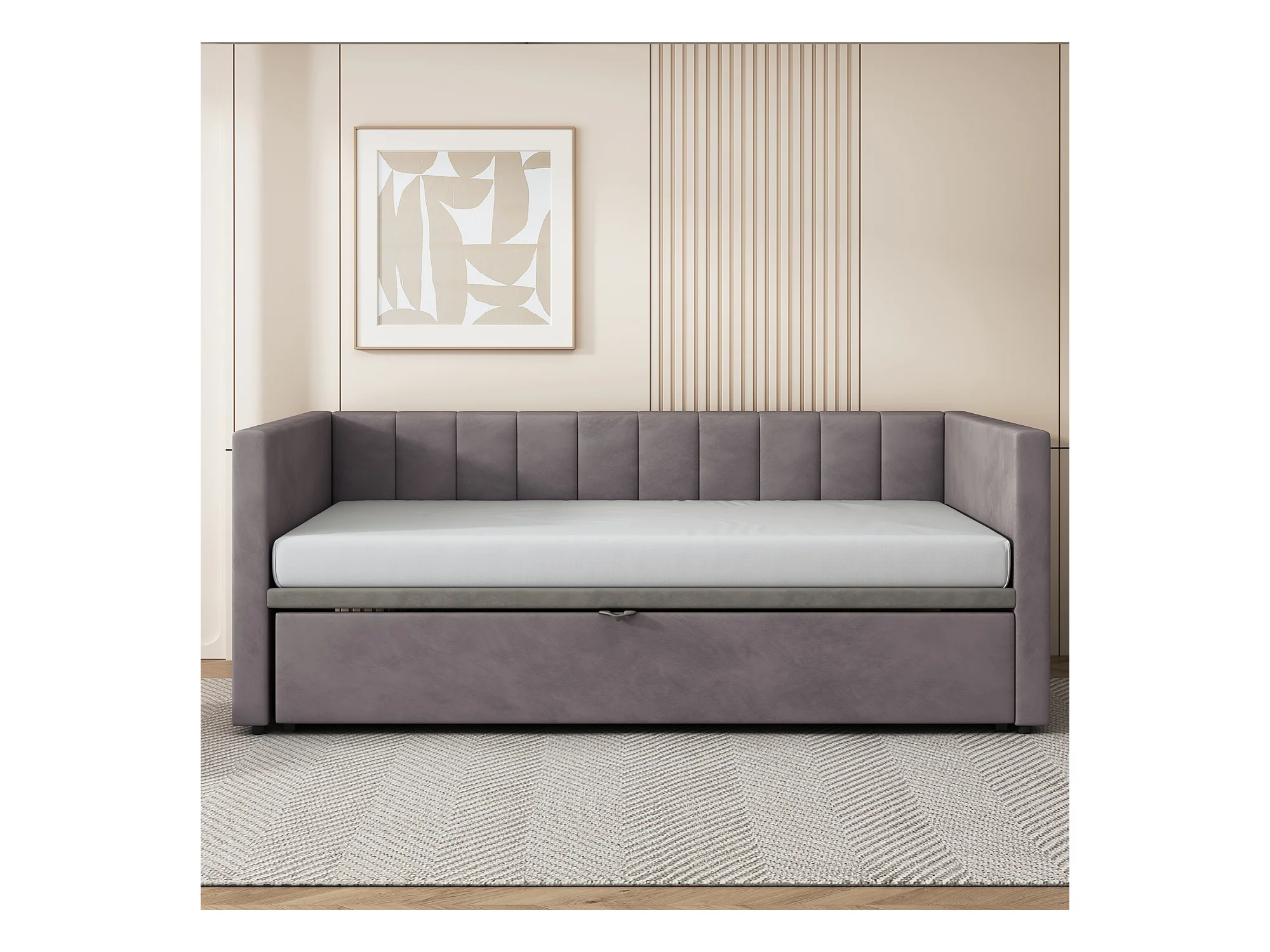 Sofá-cama retrátil - 90/180 x 200 cm - com base de ripas - veludo - cinza