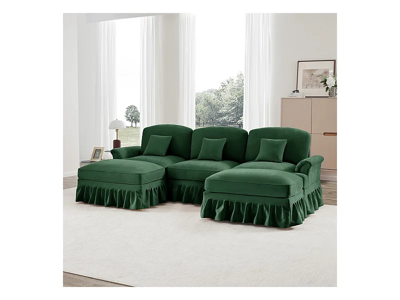 Sofá Cantinho Modular 3 Lugares em U - Chenille - Capa Removível e 2 Pufs - 272x140x93cm - Verde