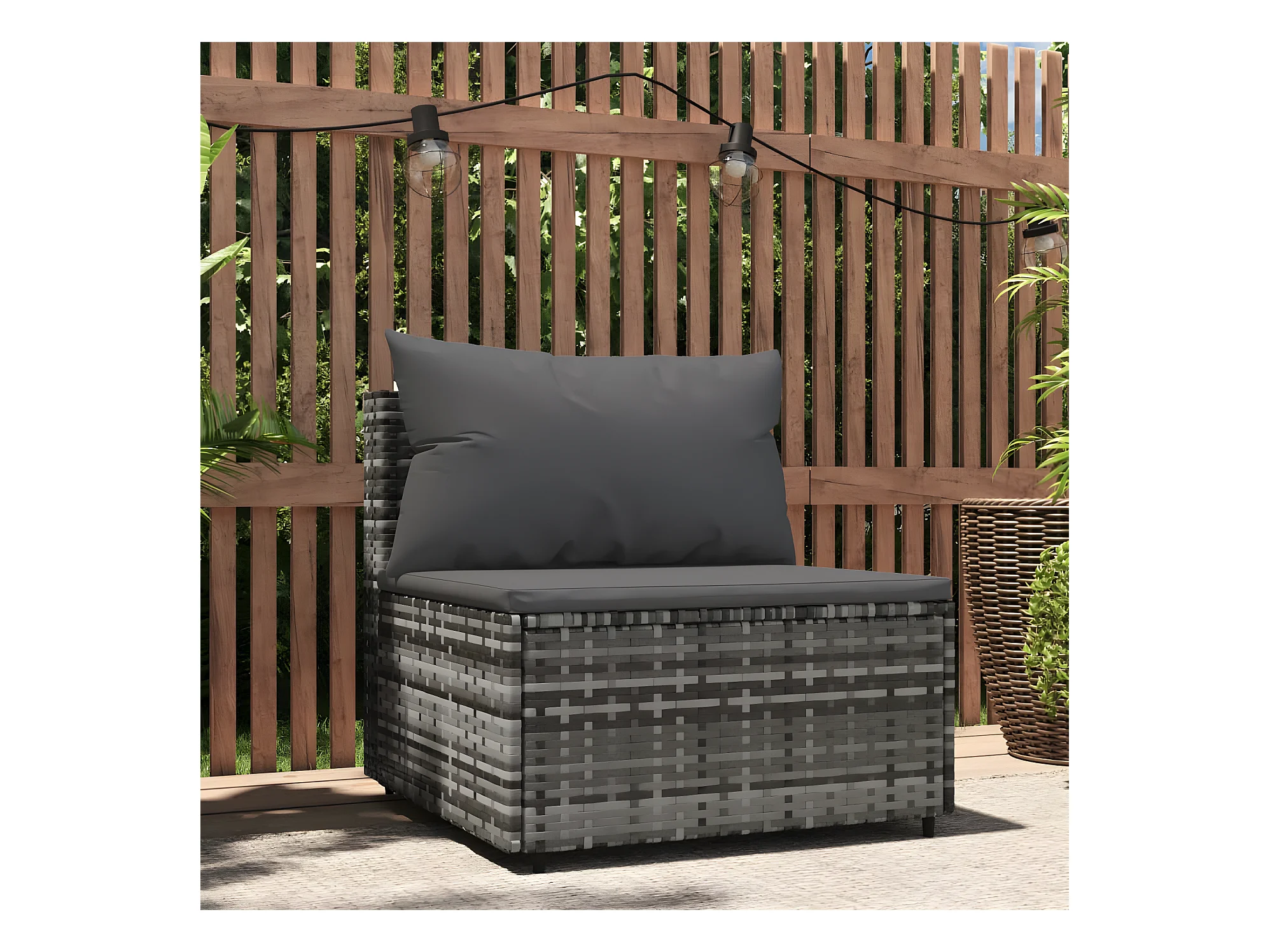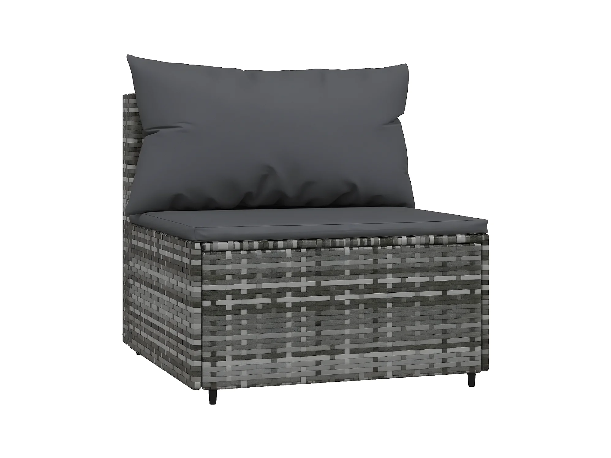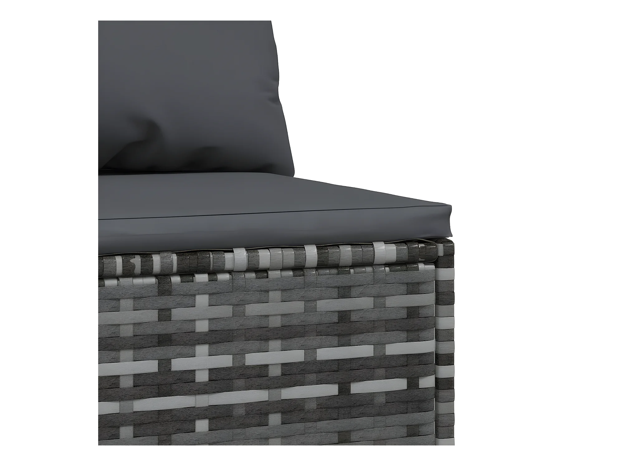 Sofá de canto de jardim com almofadas de resina tecida cinza