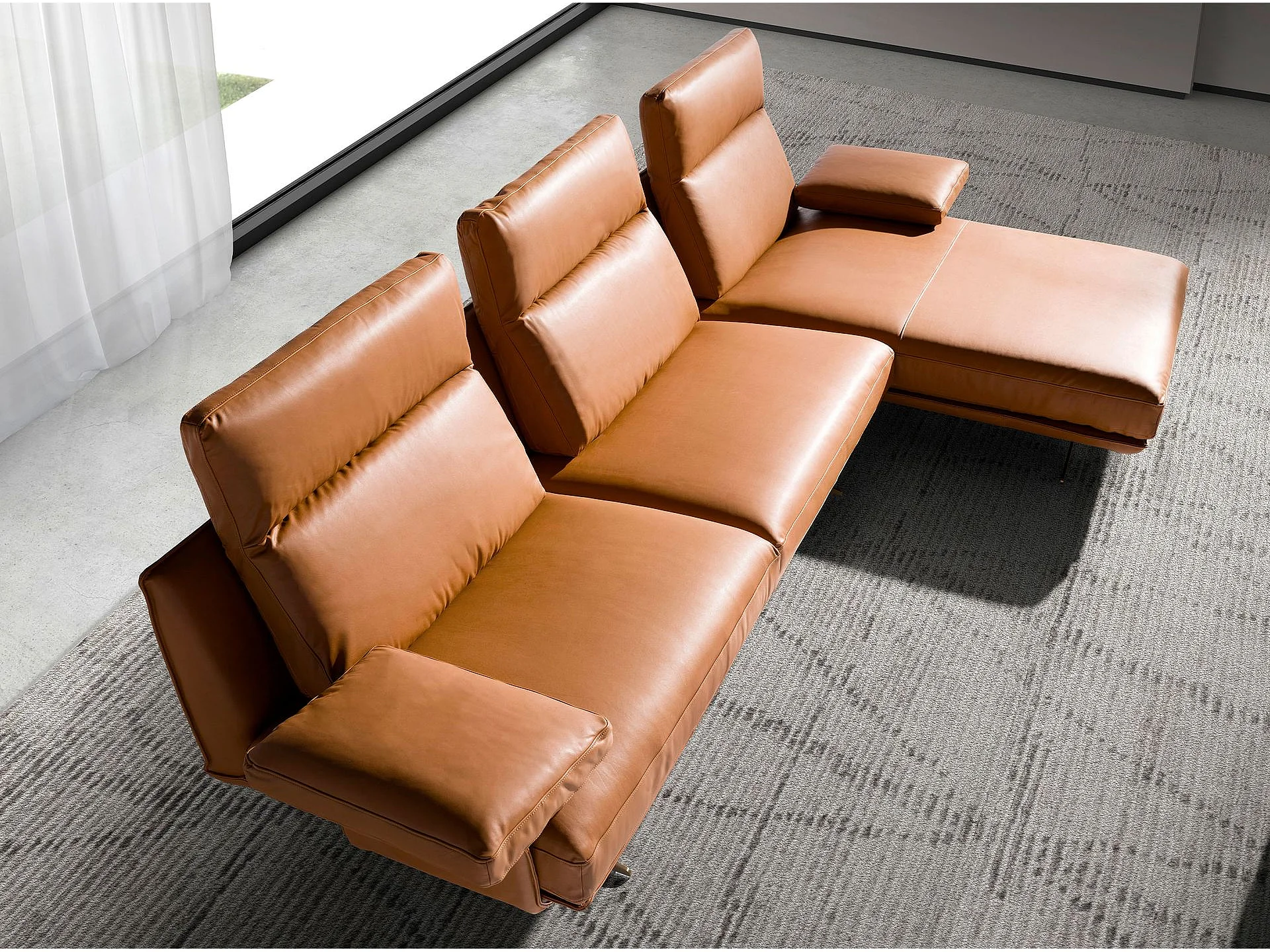 Sofá chaise longue direito em pele de terracota castanha 6227 ANGEL CERDA