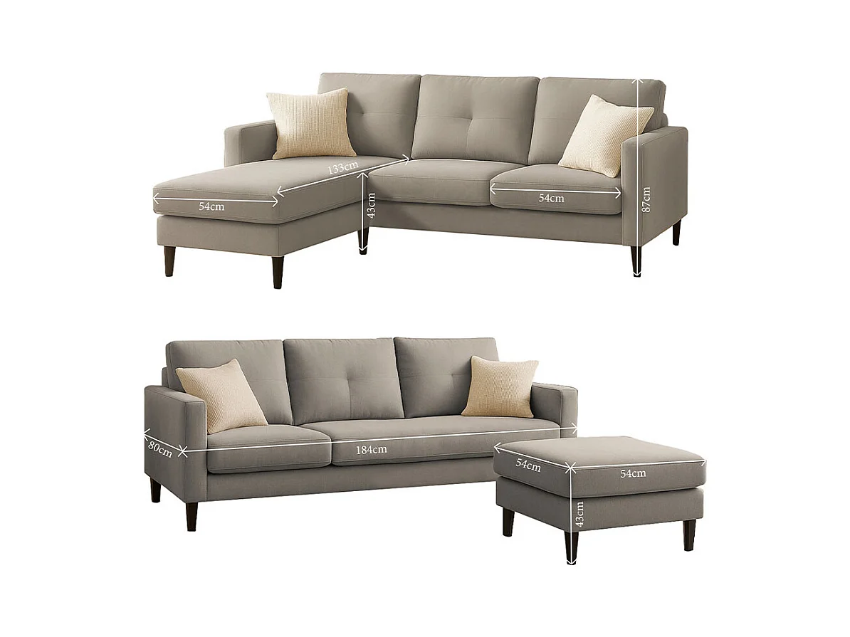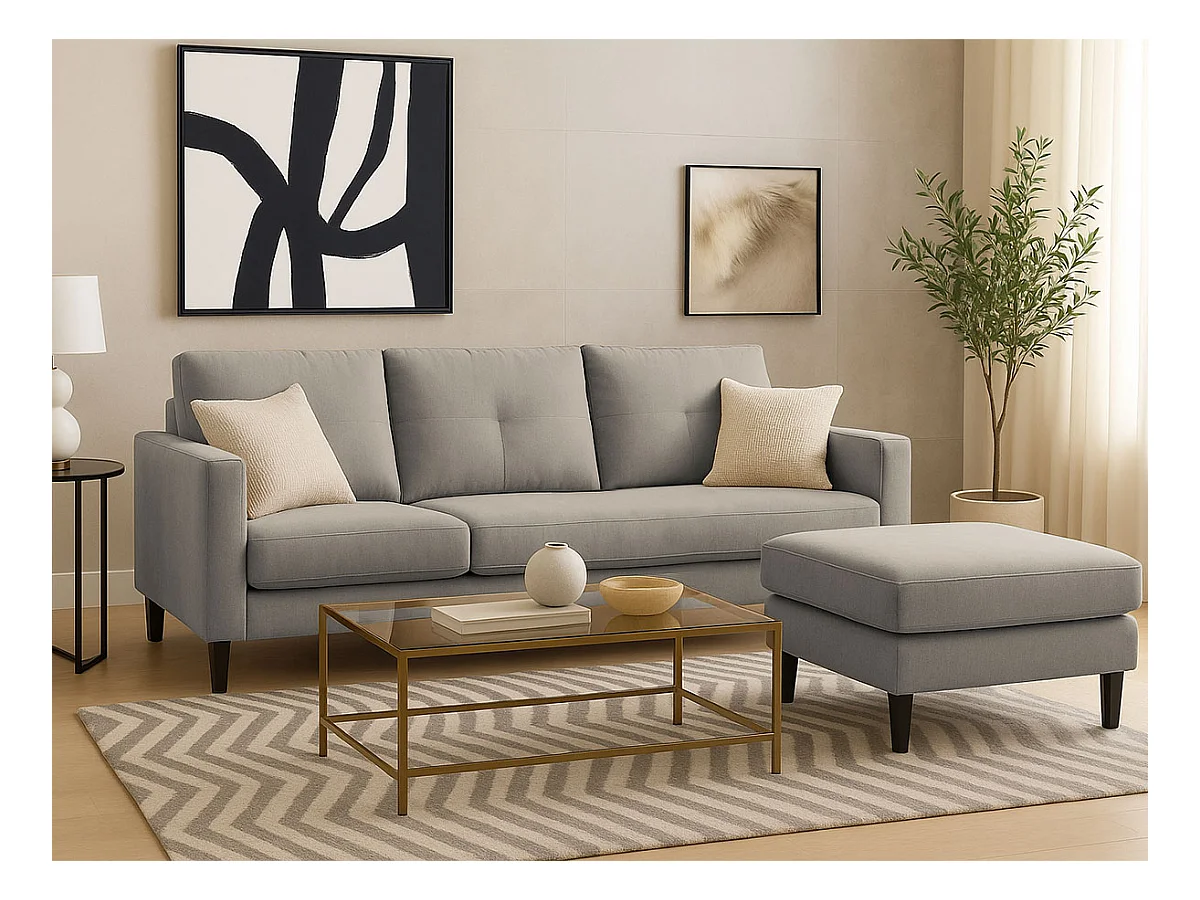 Sofá 2 lugares + almofadas decorativas 140cm tecido cinza-claro