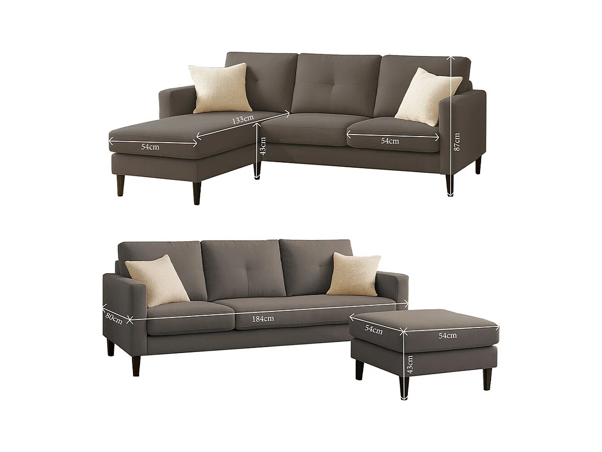 Sofá de 3 lugares 180 cm tecido cinza-escuro