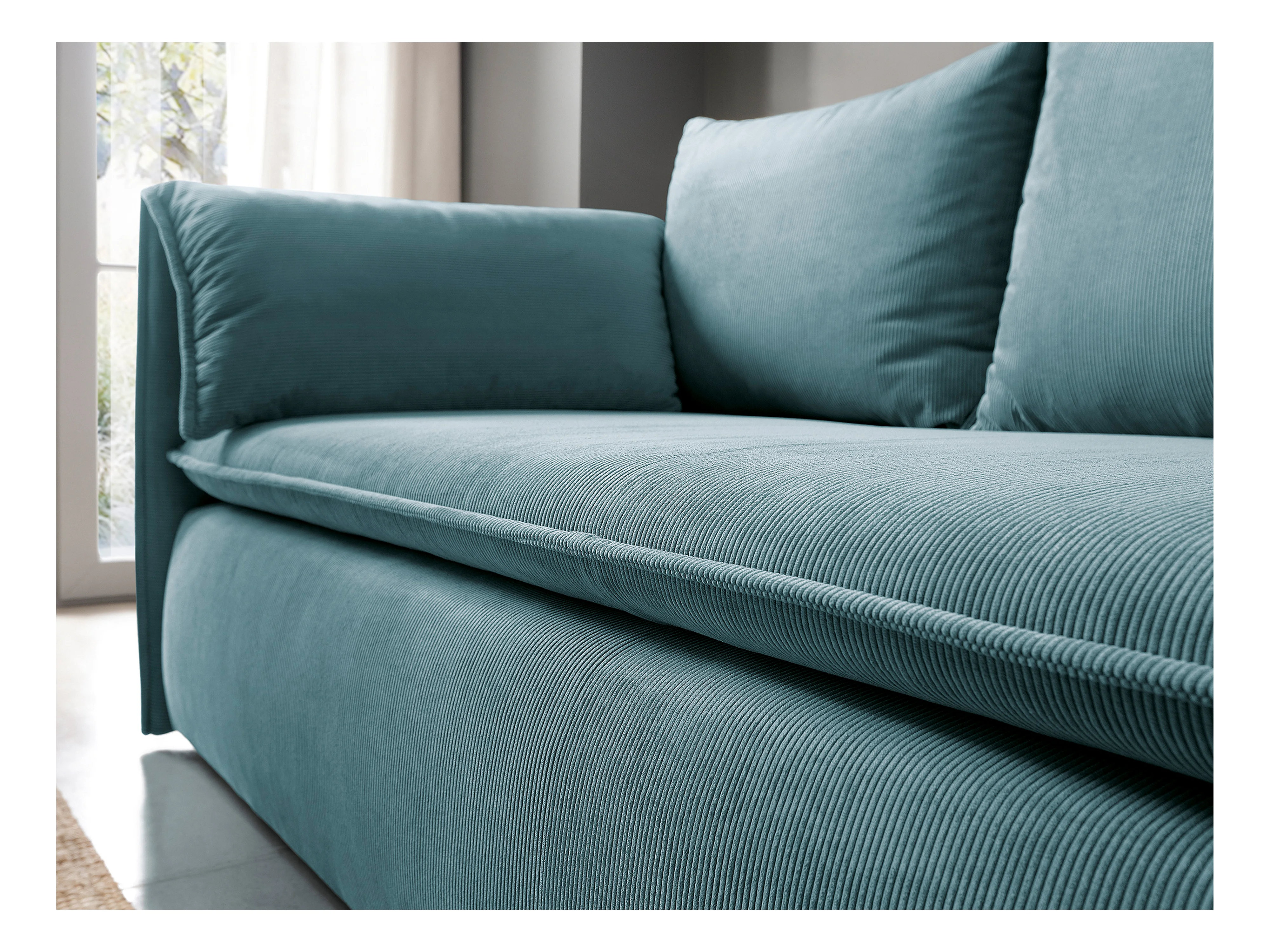 Sofá convertível de 3 lugares veludo canelado fino azul - TEODORA