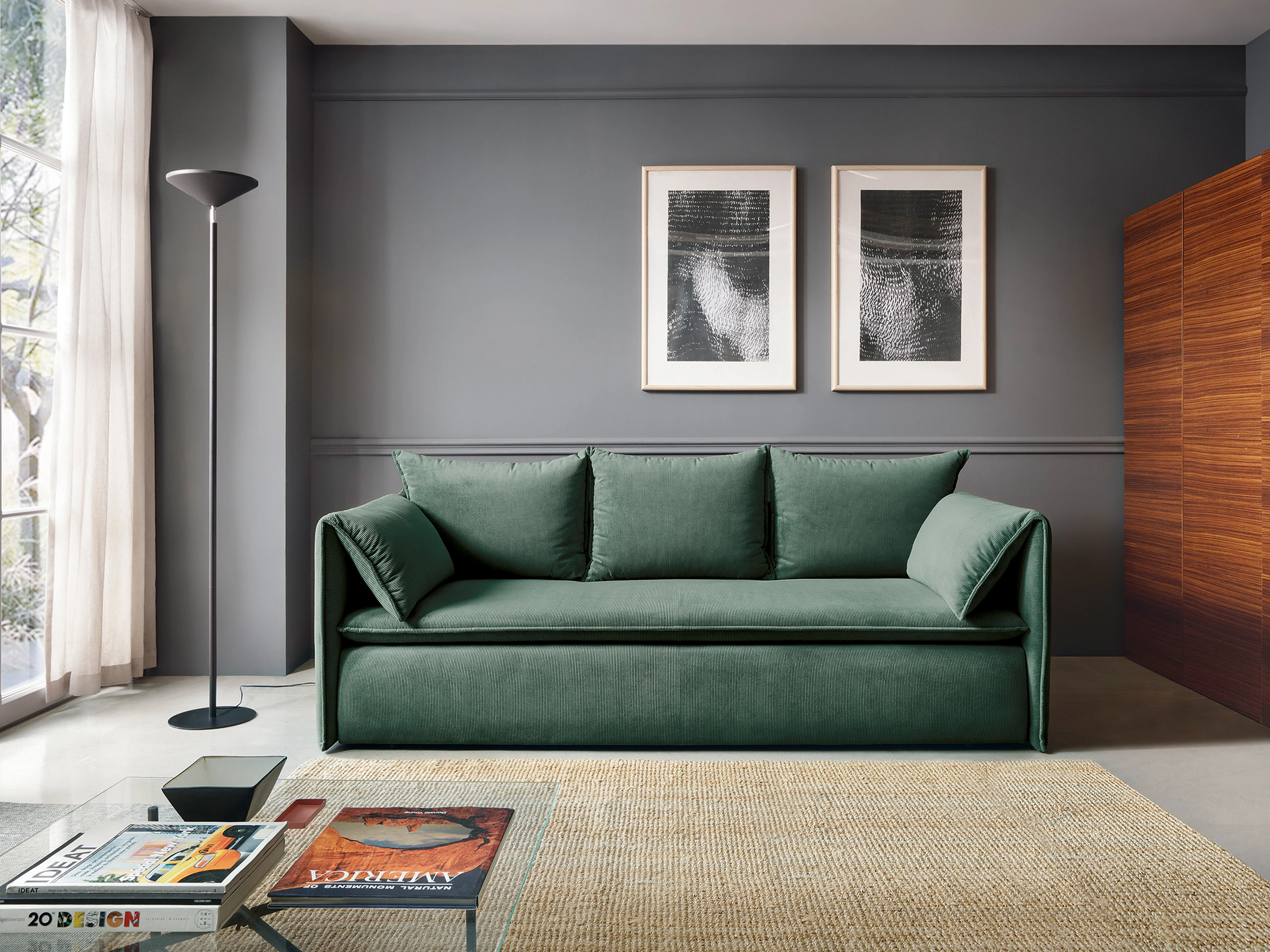 Sofá convertível de 3 lugares veludo canelado fino verde pinho - TEODORA