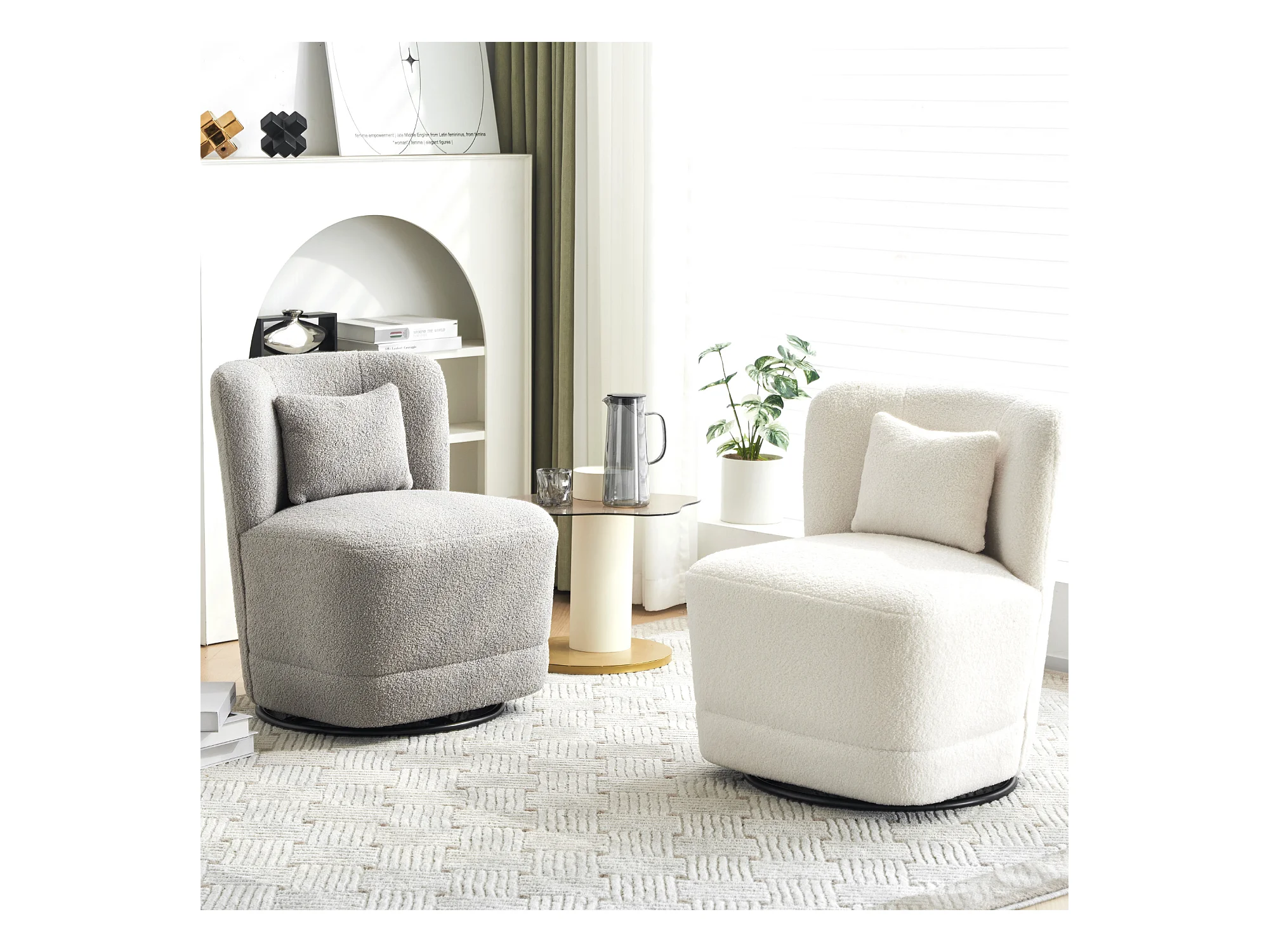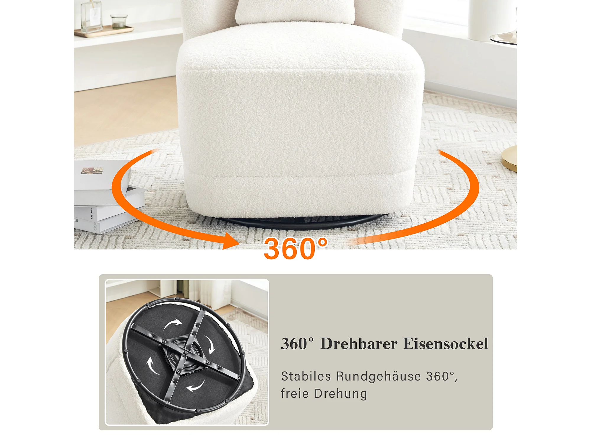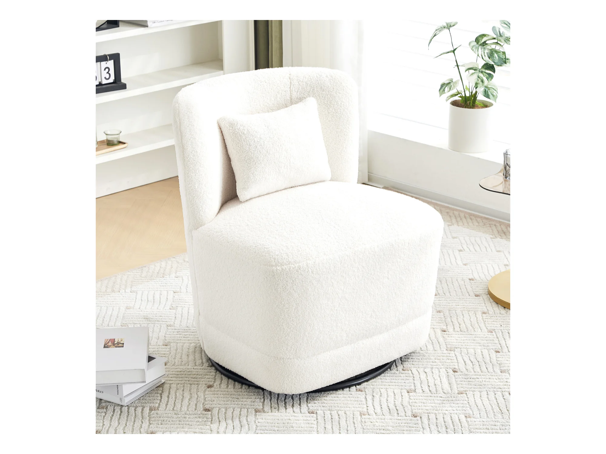 Sofá de 1 lugar, poltrona giratória 360° com almofada e encosto - tecido French Terry - 58 x 63 x 72 cm - branco