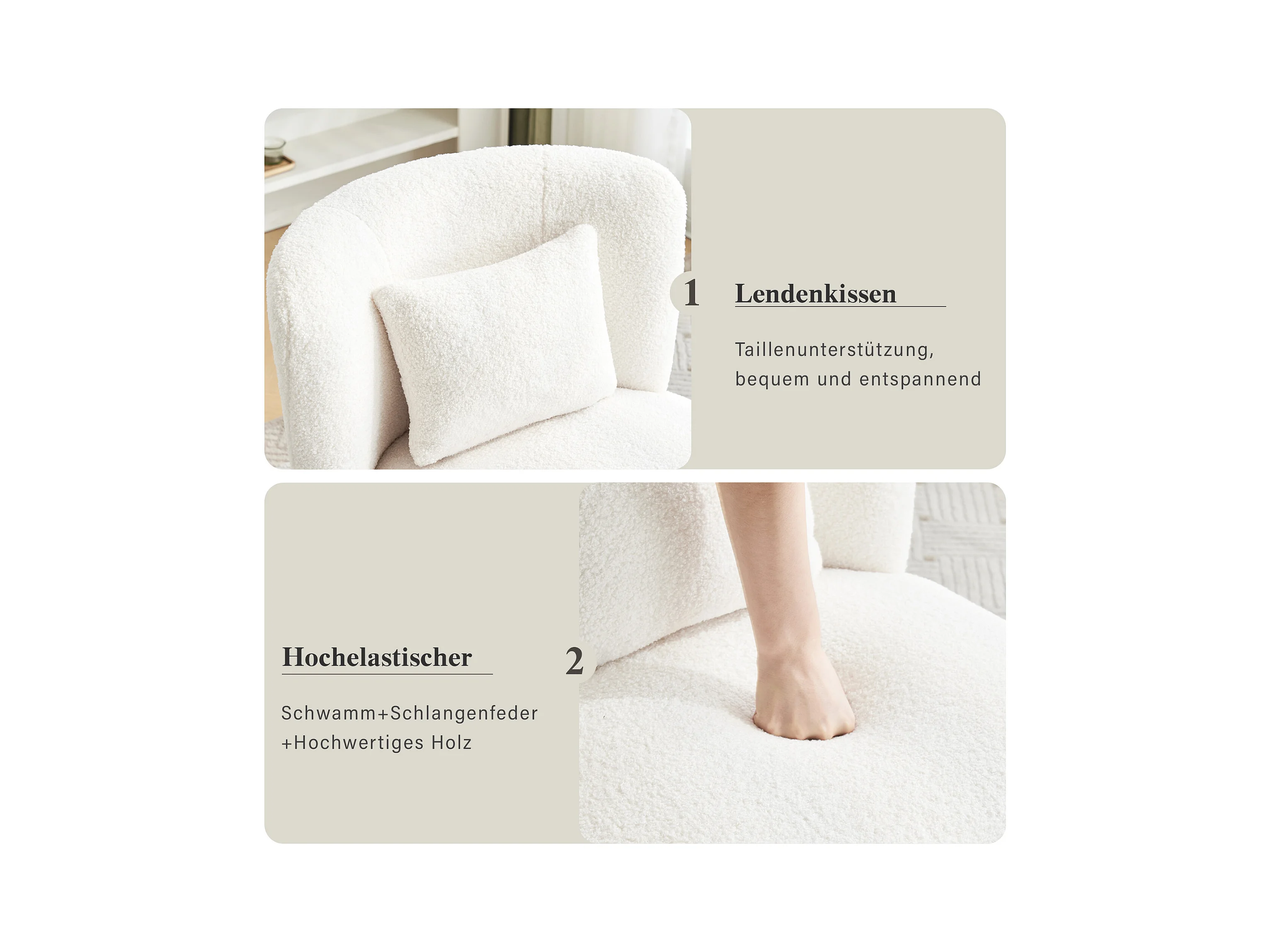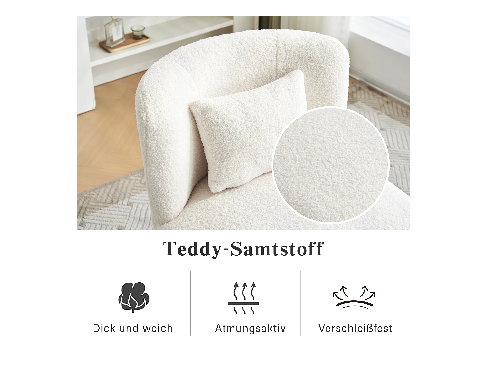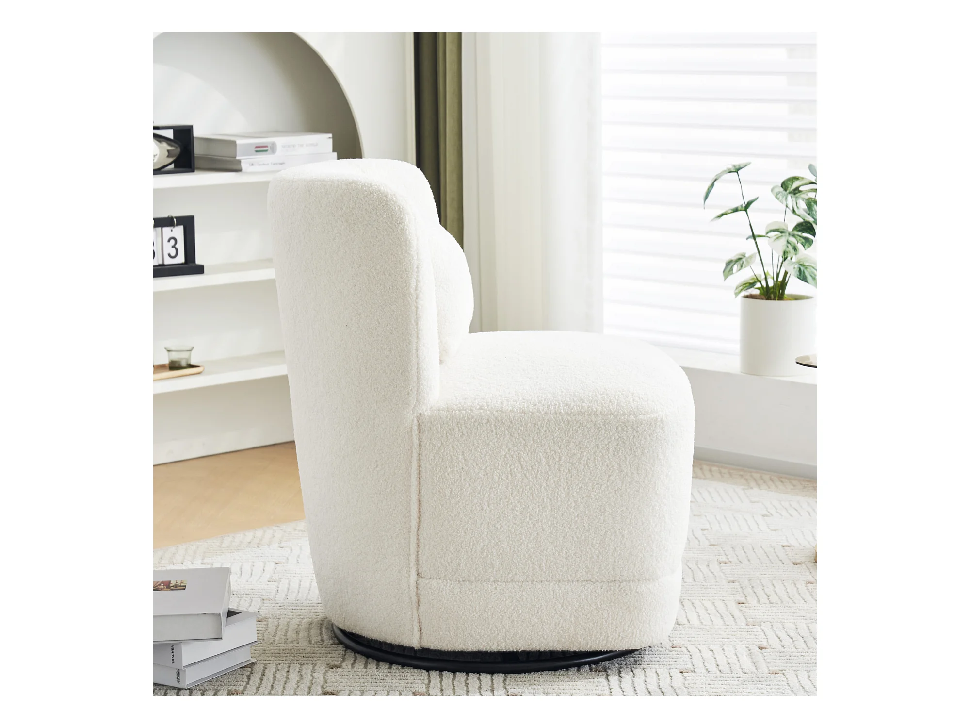 Sofá de 1 lugar, poltrona giratória 360° com almofada e encosto - tecido French Terry - 58 x 63 x 72 cm - branco