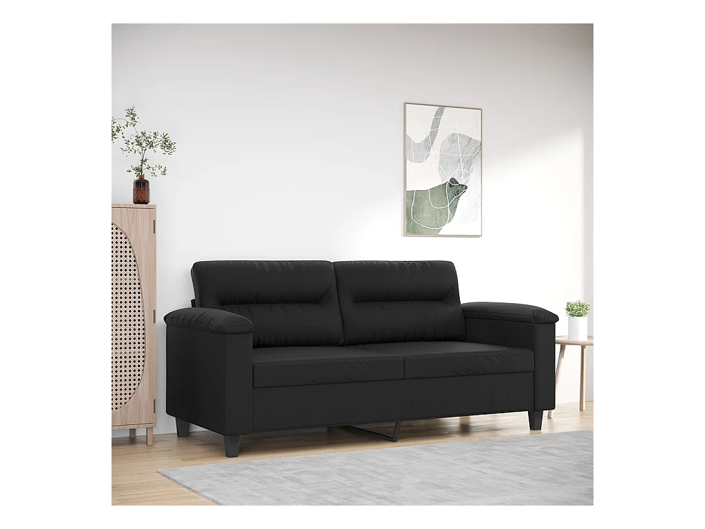 Sofá de 2 lugares 140 cm tecido de microfibra preto