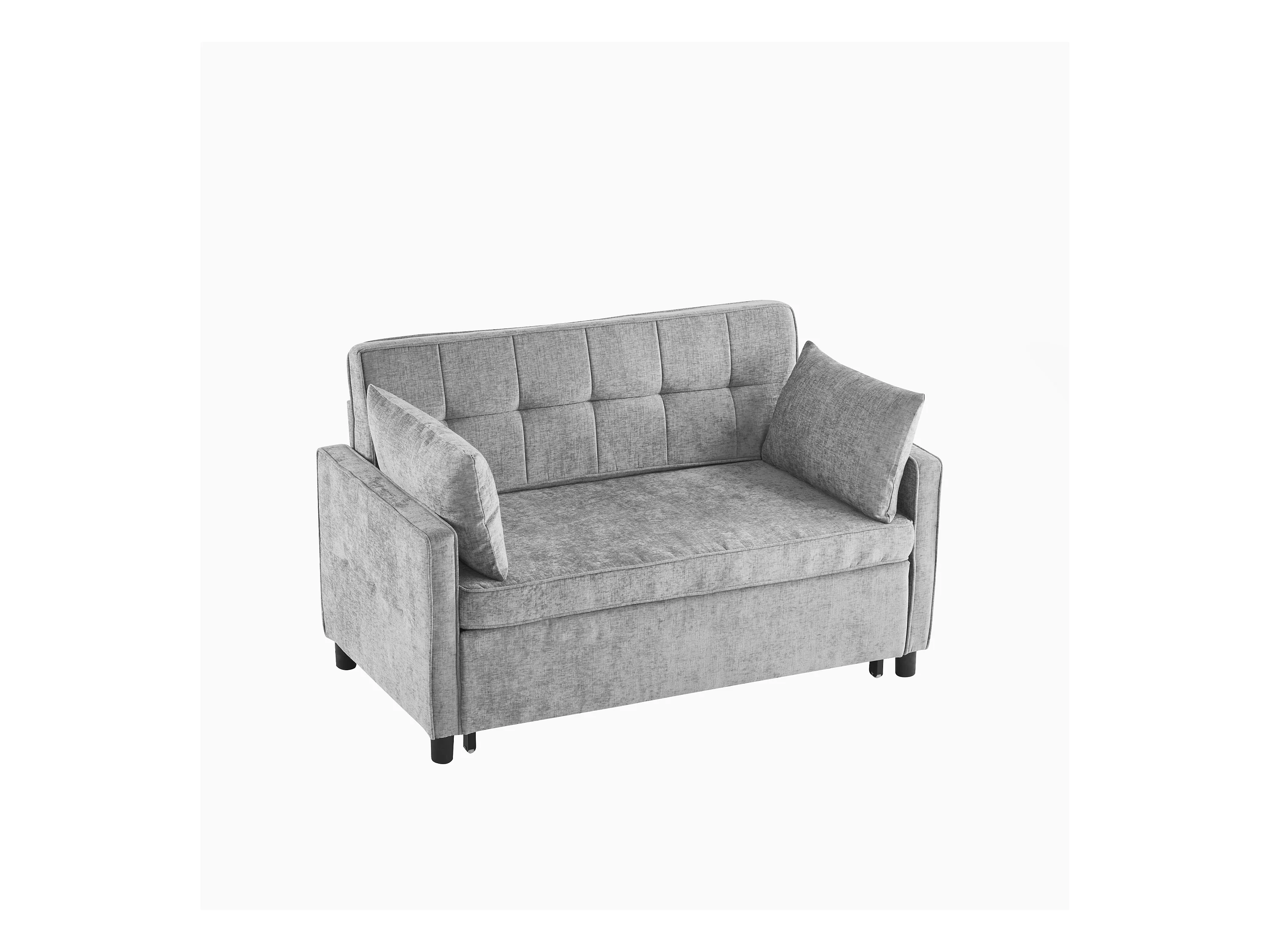 Sofá de 2 lugares cinza claro - Sofá de sala com encosto ajustável e função de cama retrátil - 2 almofadas e apoios de braços - chenille