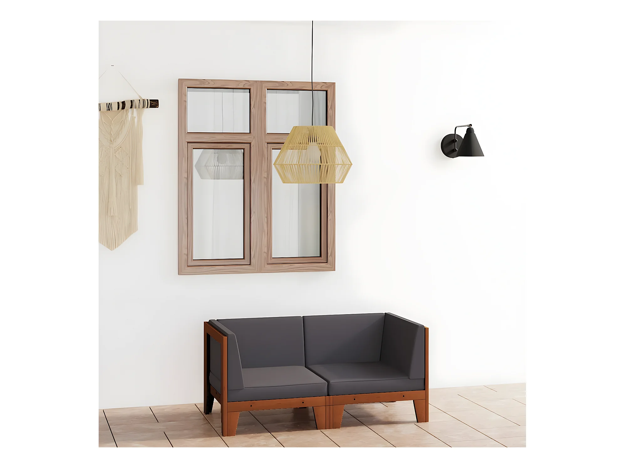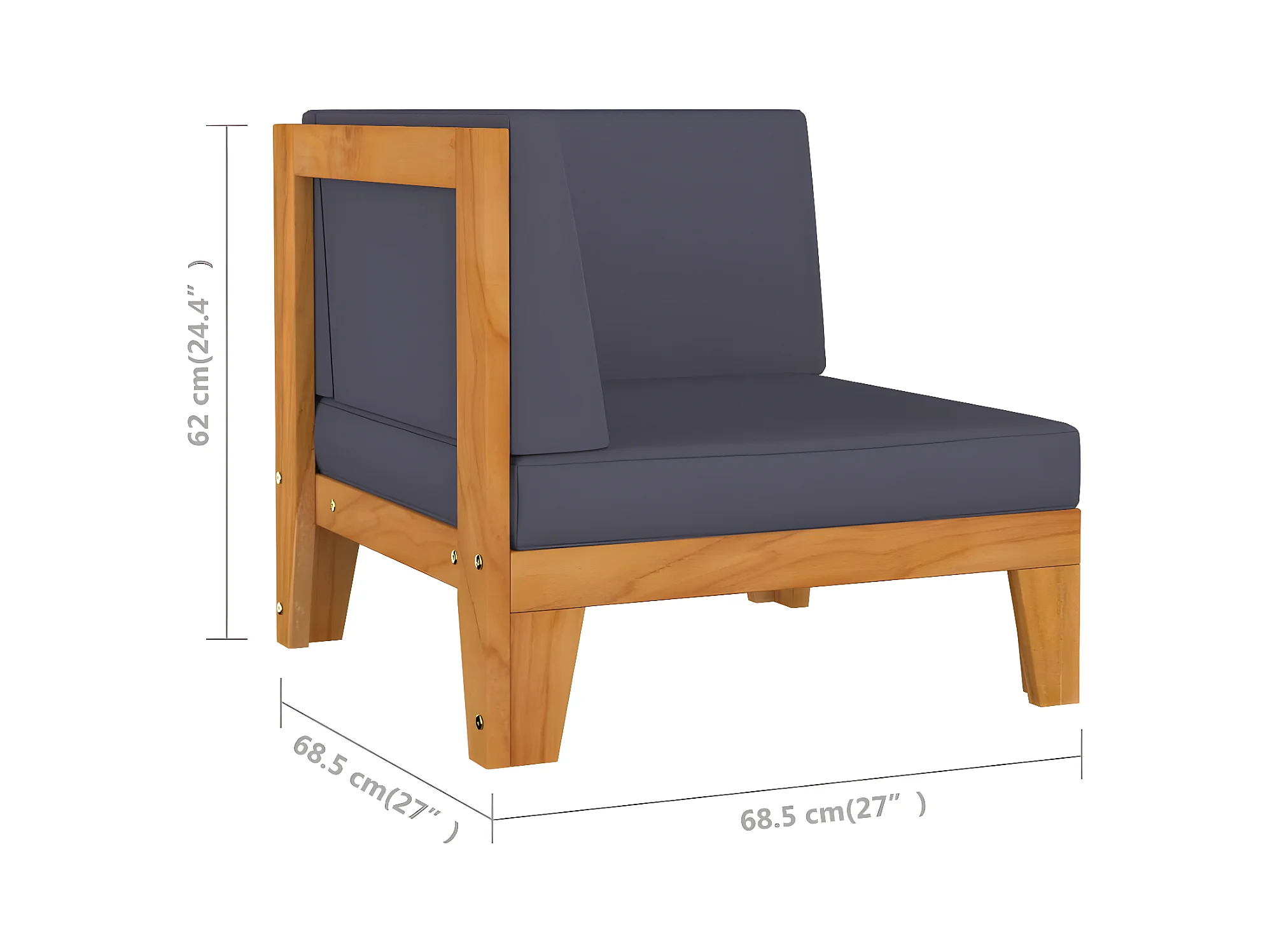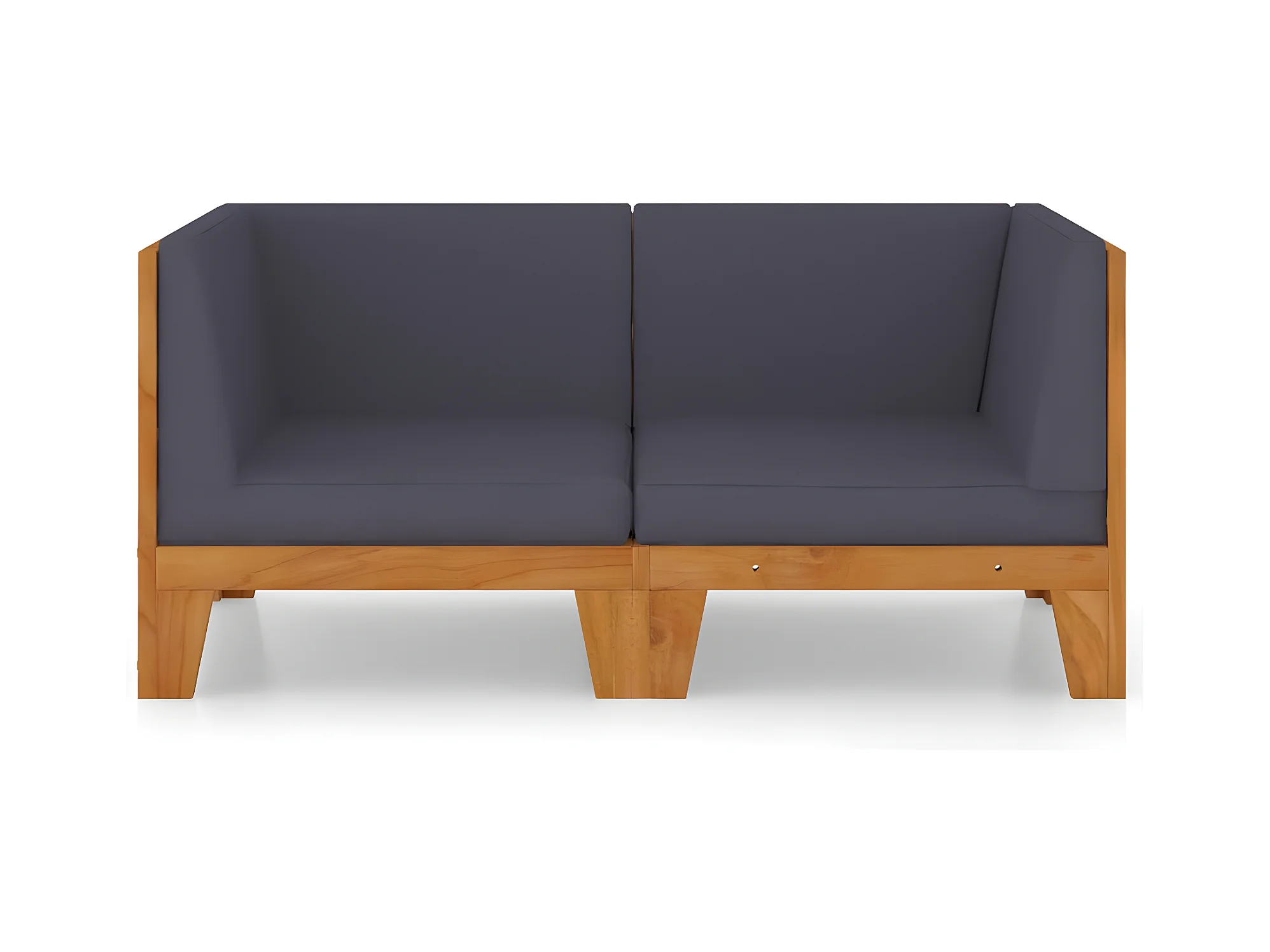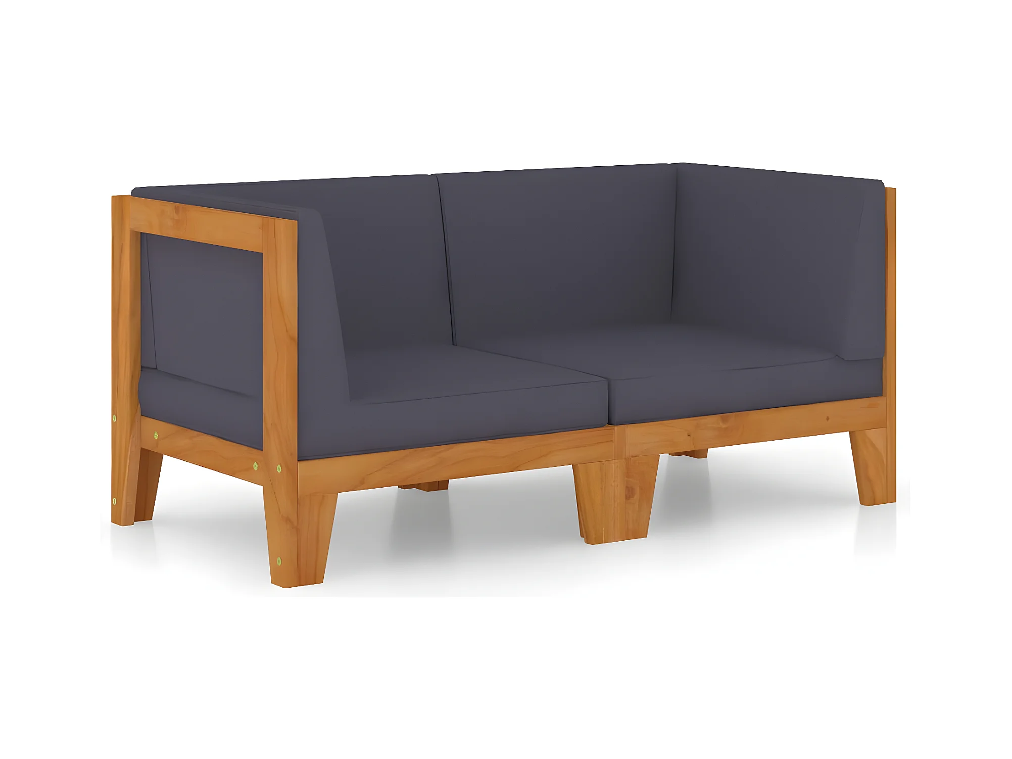 Sofá de 2 lugares com almofadões cinzento-escuro acácia maciça