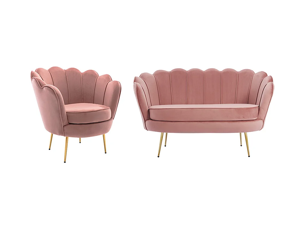 Sofá de 2 lugares e poltrona forma de concha veludo cor-de-rosa - DANDELION