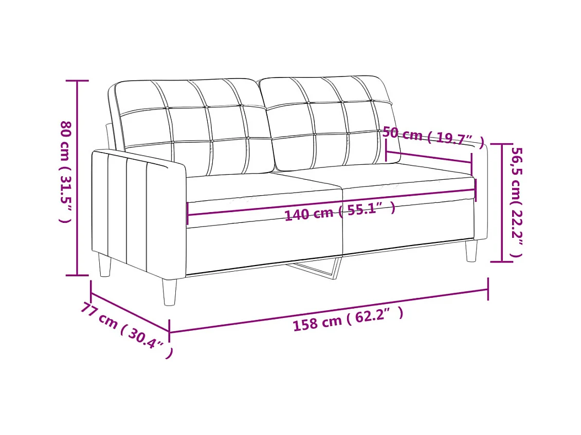 Sofá de 2 lugares em tecido 140 cm cinzento-escuro