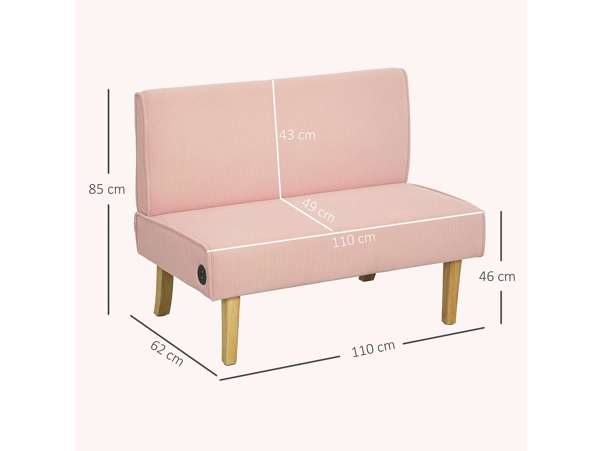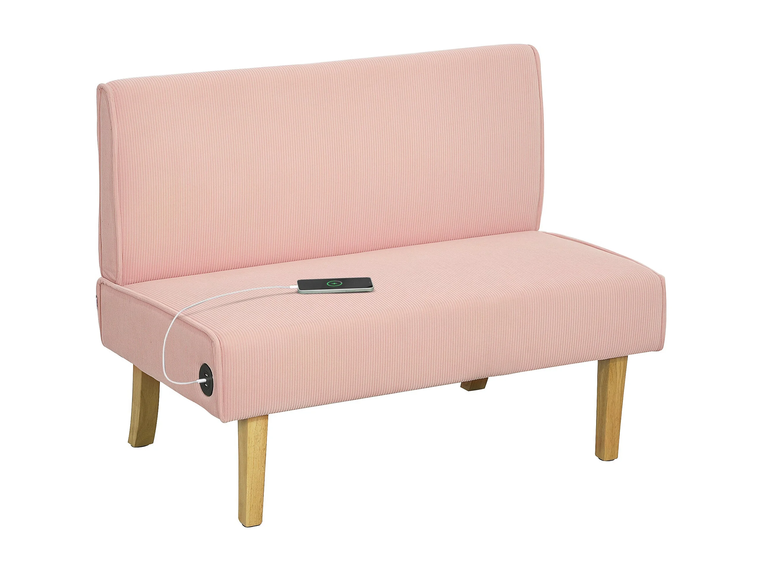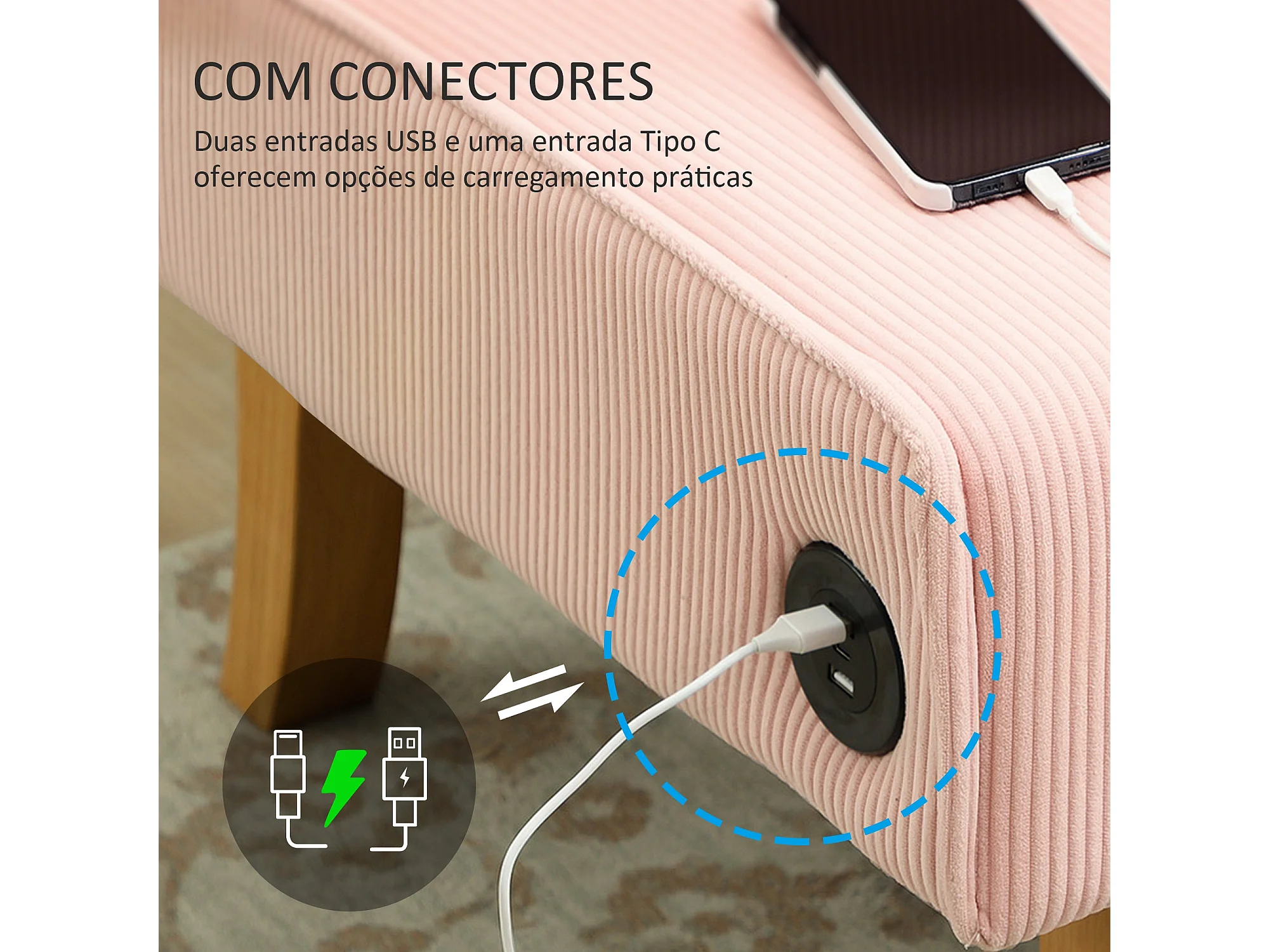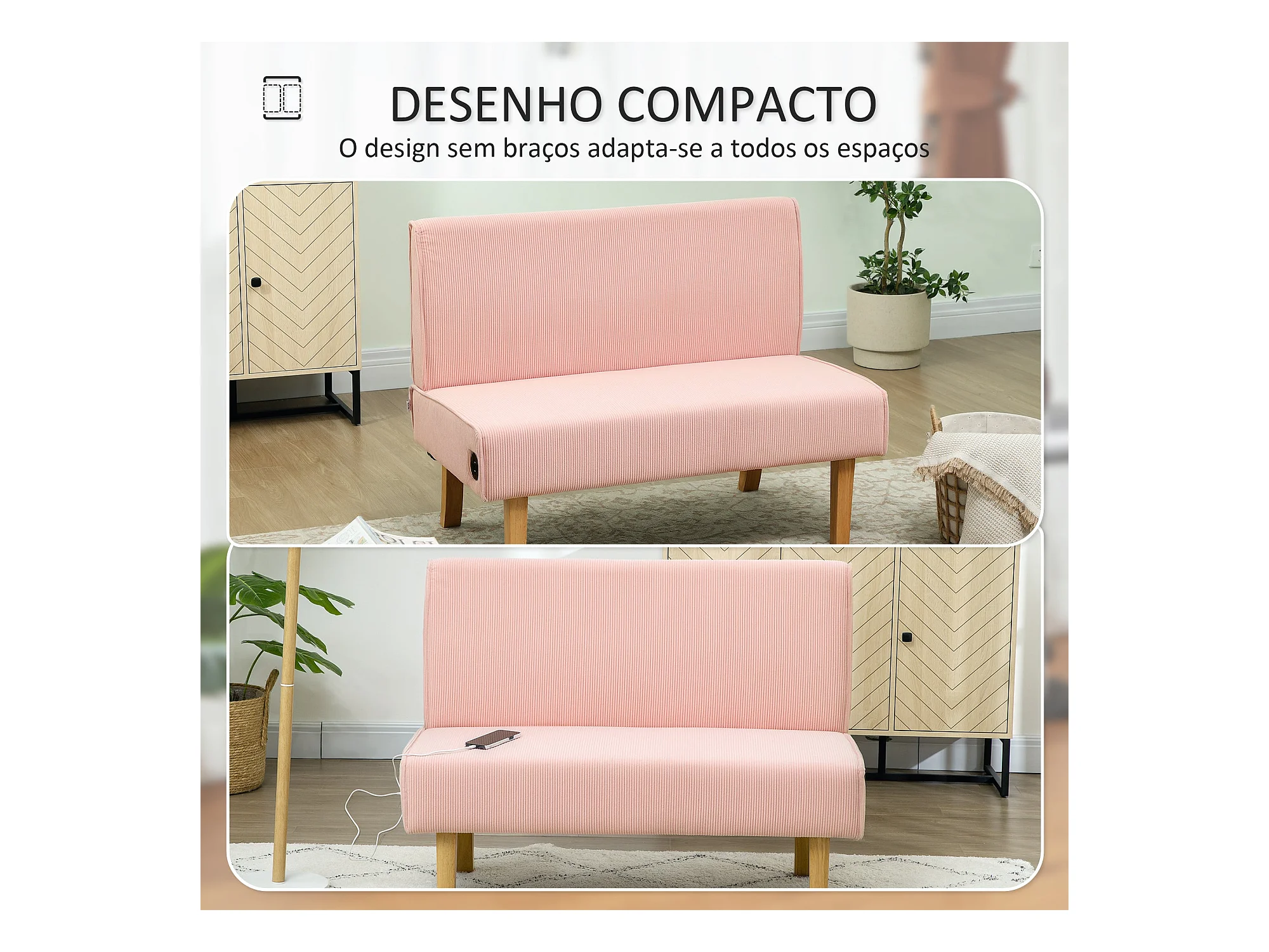 Sofá de 2 Lugares em Veludo Cotelê com USB e Pés de Madeira - Conforto e Estilo para Sua Sala