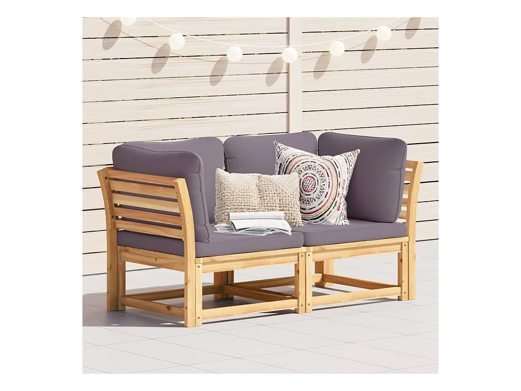 Sofá de jardim com almofadas de 2 lugares em madeira maciça de acácia
