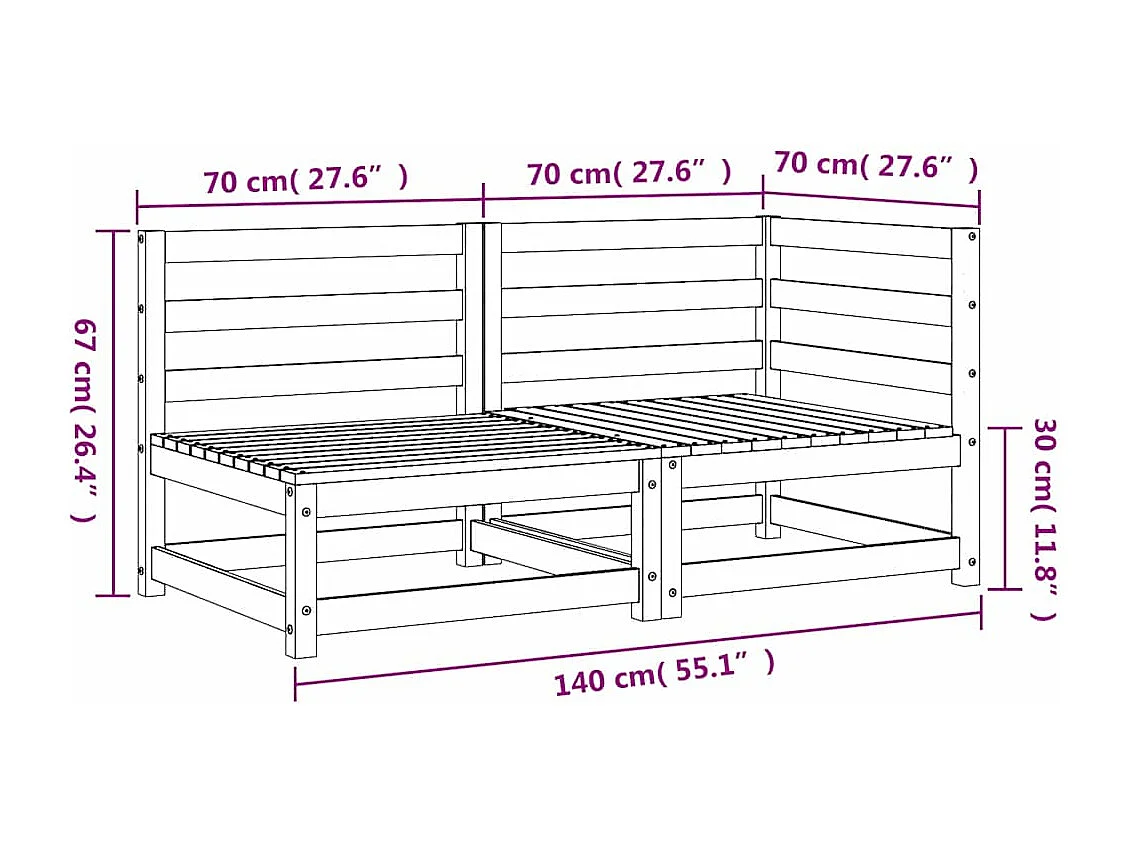 Sofá de 2 lugares para jardim pinho maciço castanho-mel