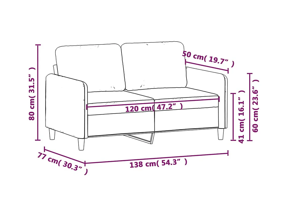 Sofá de 2 lugares 120 cm couro artificial vermelho tinto