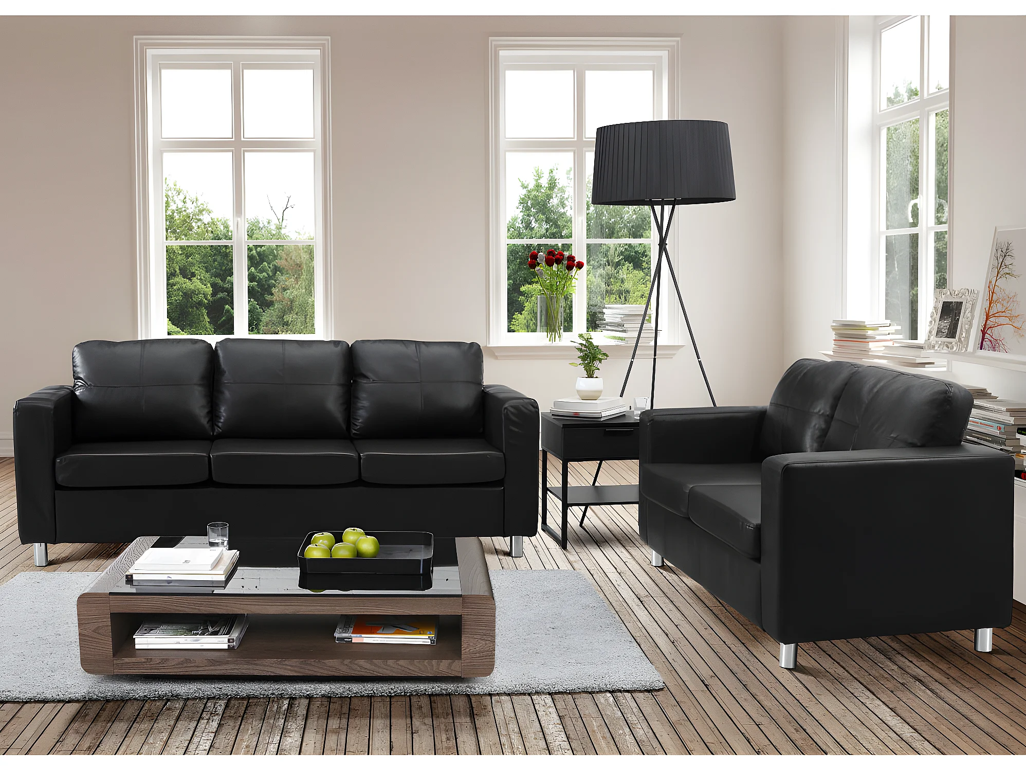 Sofá de 3+2 lugares em pele sintética Preto - ACKLEY
