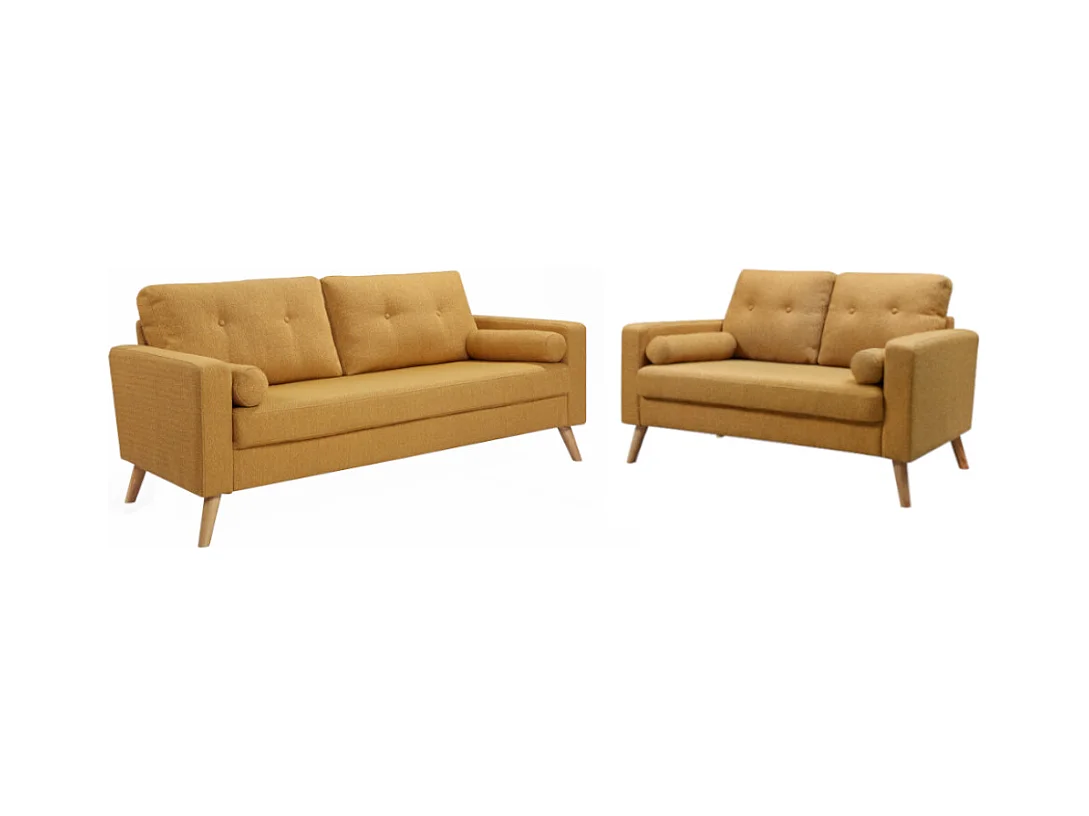 Sofá de 3+2 lugares em tecido efeito lã amarelo - TATUM