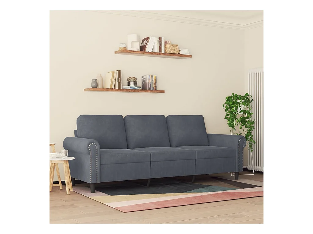 Sofá de 3 lugares 180 cm veludo cinza-escuro
