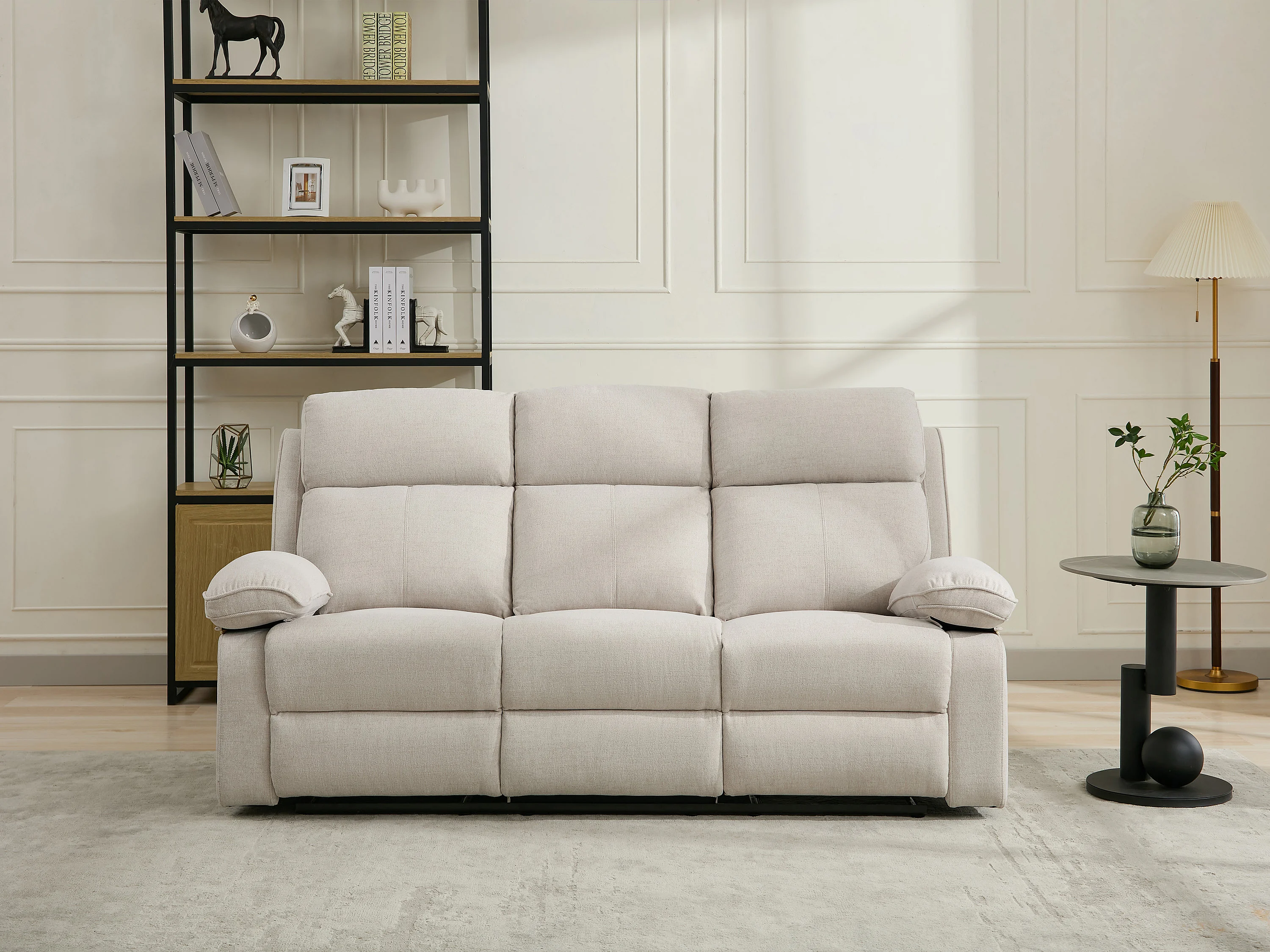 Sofá de 3 lugares articulado em tecido matizado bege - LANA