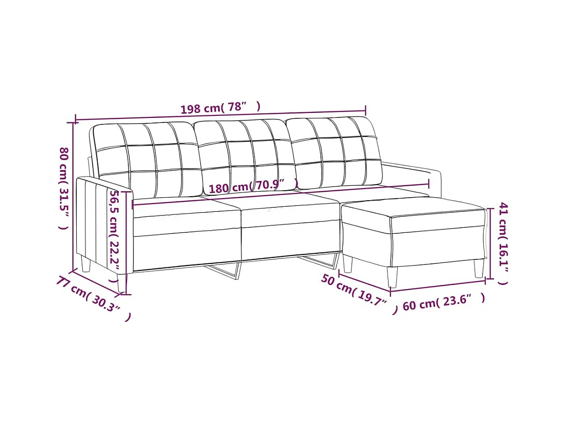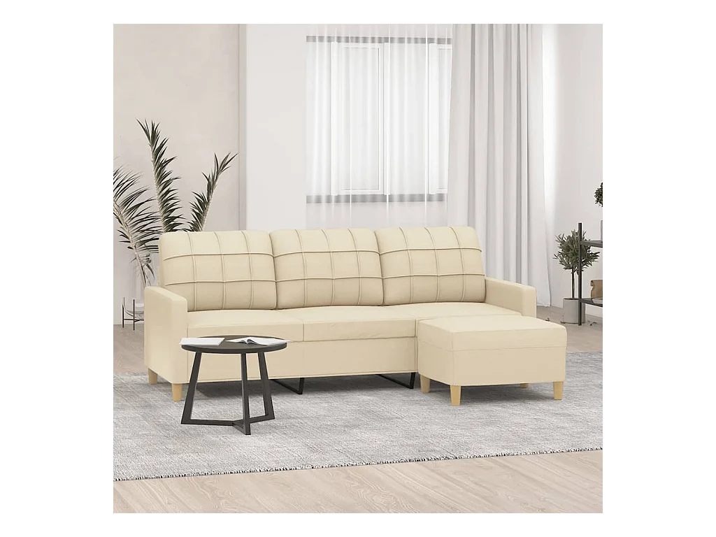 Sofá de 3 lugares com apoio de pés 180 cm tecido cor creme