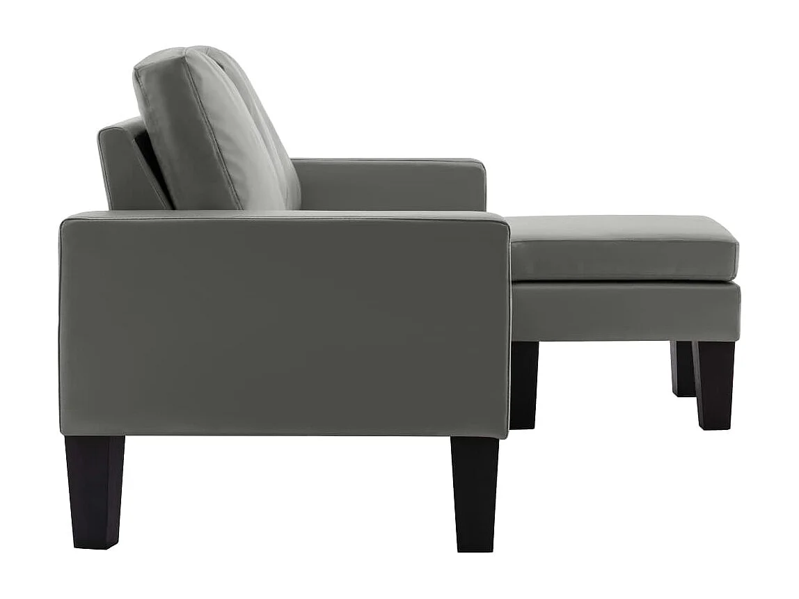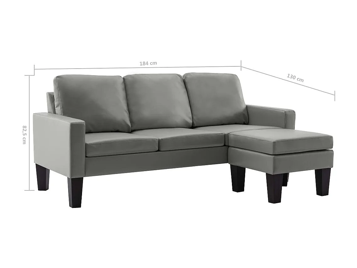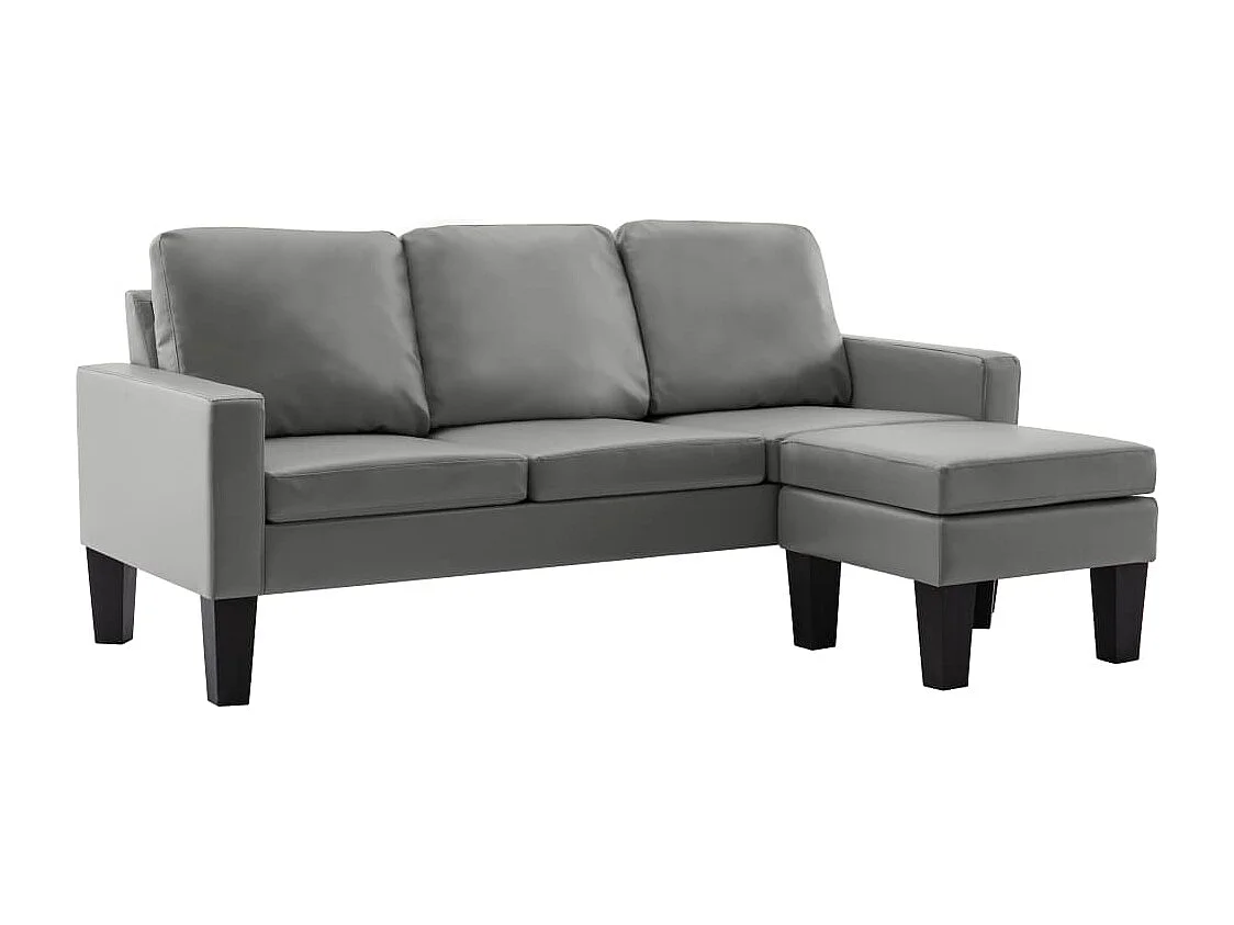 Sofá de 3 lugares com apoio de pés couro artificial cinzento