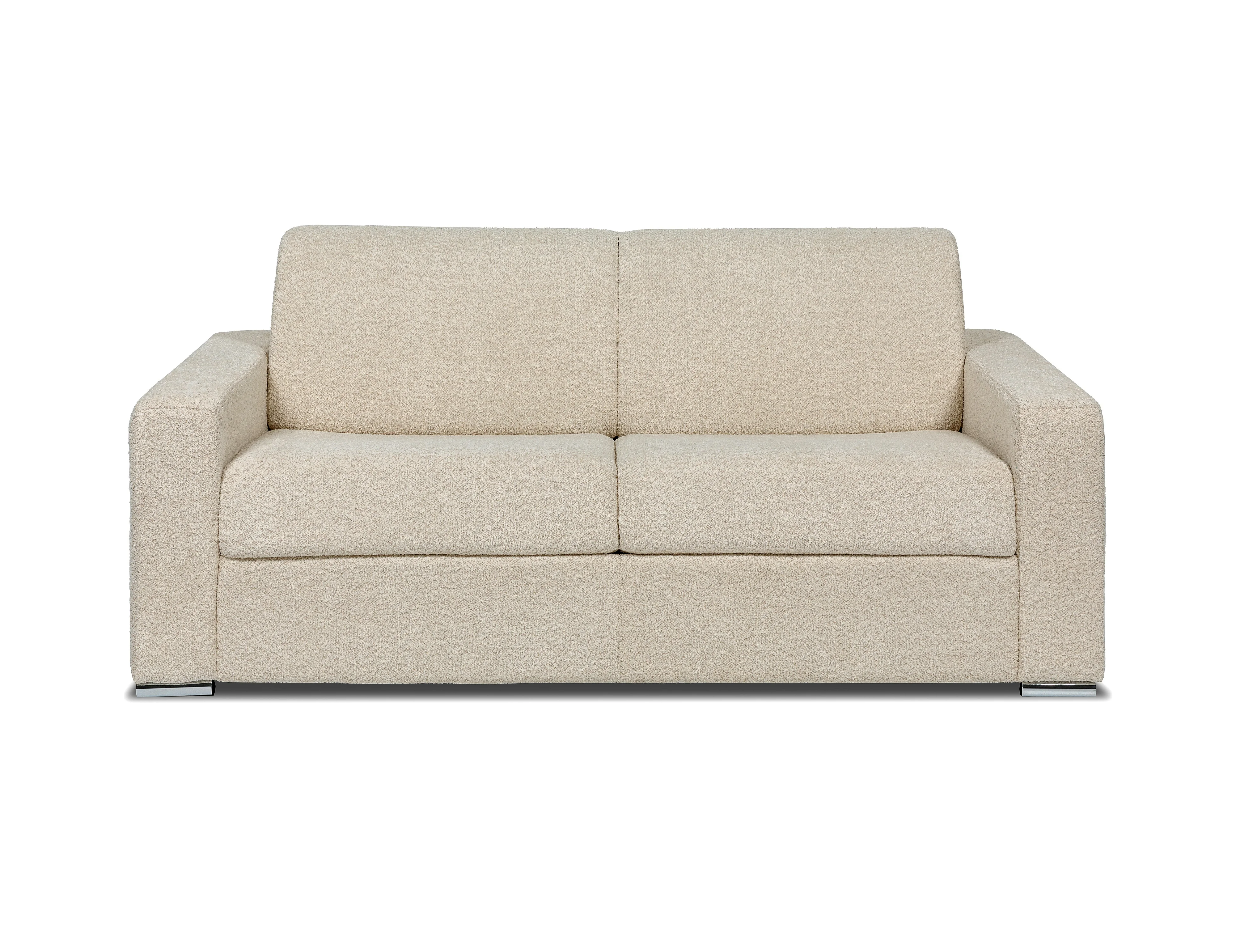 Sofá de 3 lugares convertível de abertura rápida em tecido bouclé bege, cama ripas largas 140 cm e colchão 18 cm - CALITO