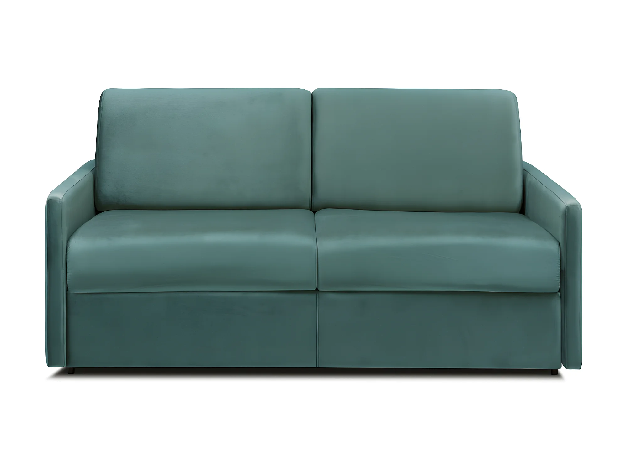 Sofá de 3 lugares convertível de abertura rápida em veludo CALIFE verde-menta com cama de ripas largas de 140 cm e colchão de 14 cm
