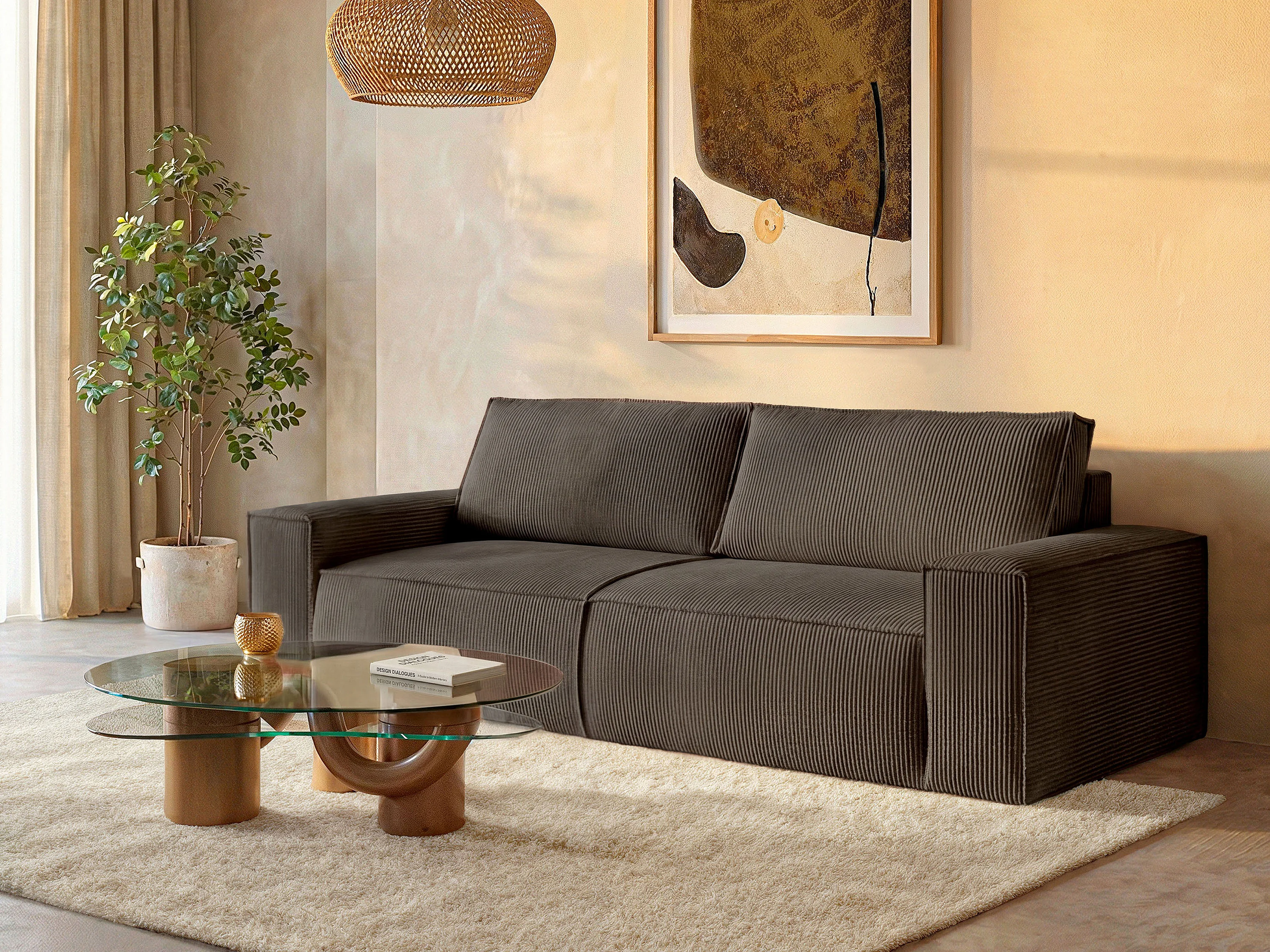Sofá de 4 lugares convertível em veludo canelado cor castanho - AMELIA de PASCAL MORABITO