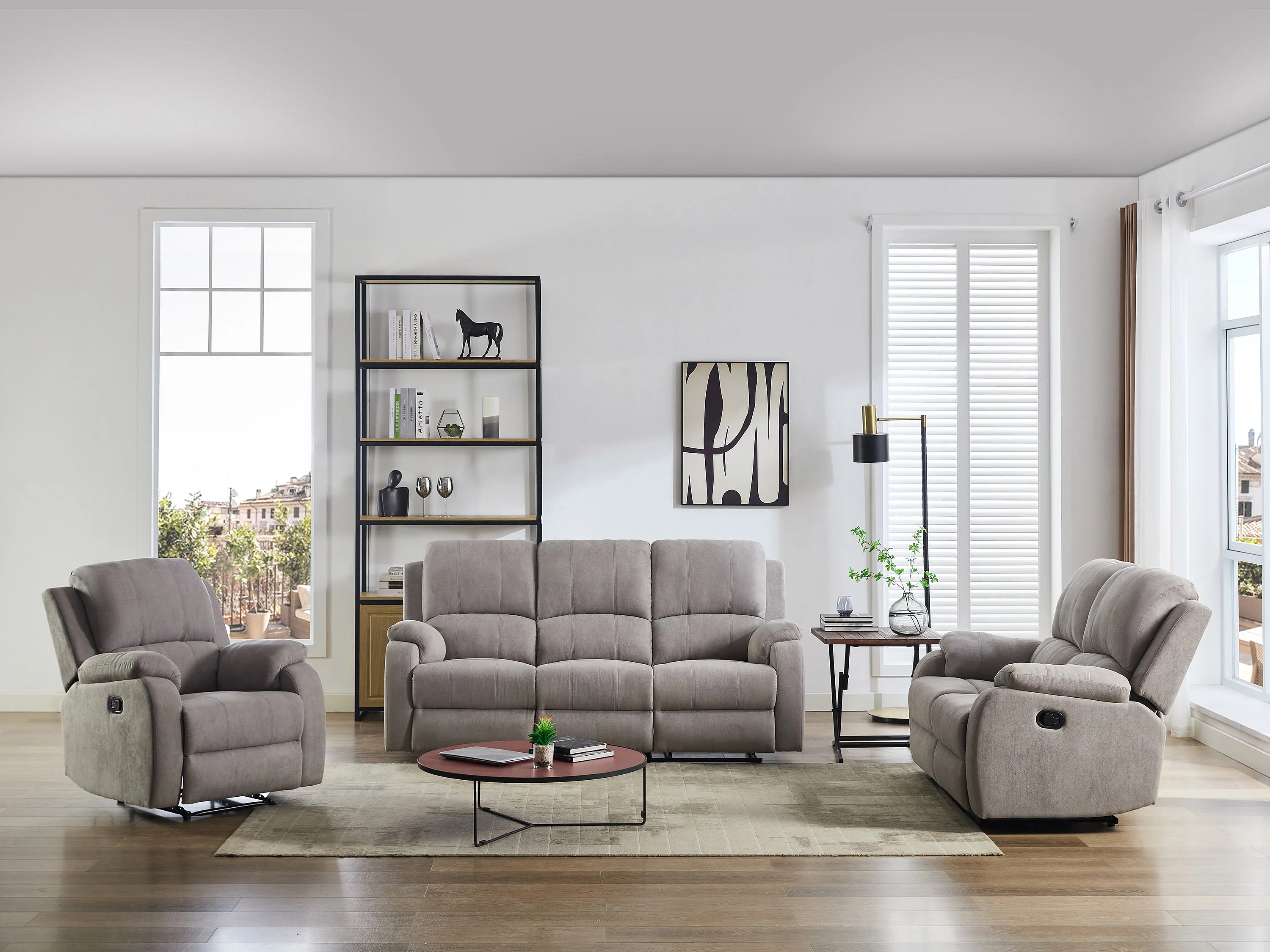 Sofá de 3 lugares e de 2 lugares articulados em microfibra cinza-claro - BRODY