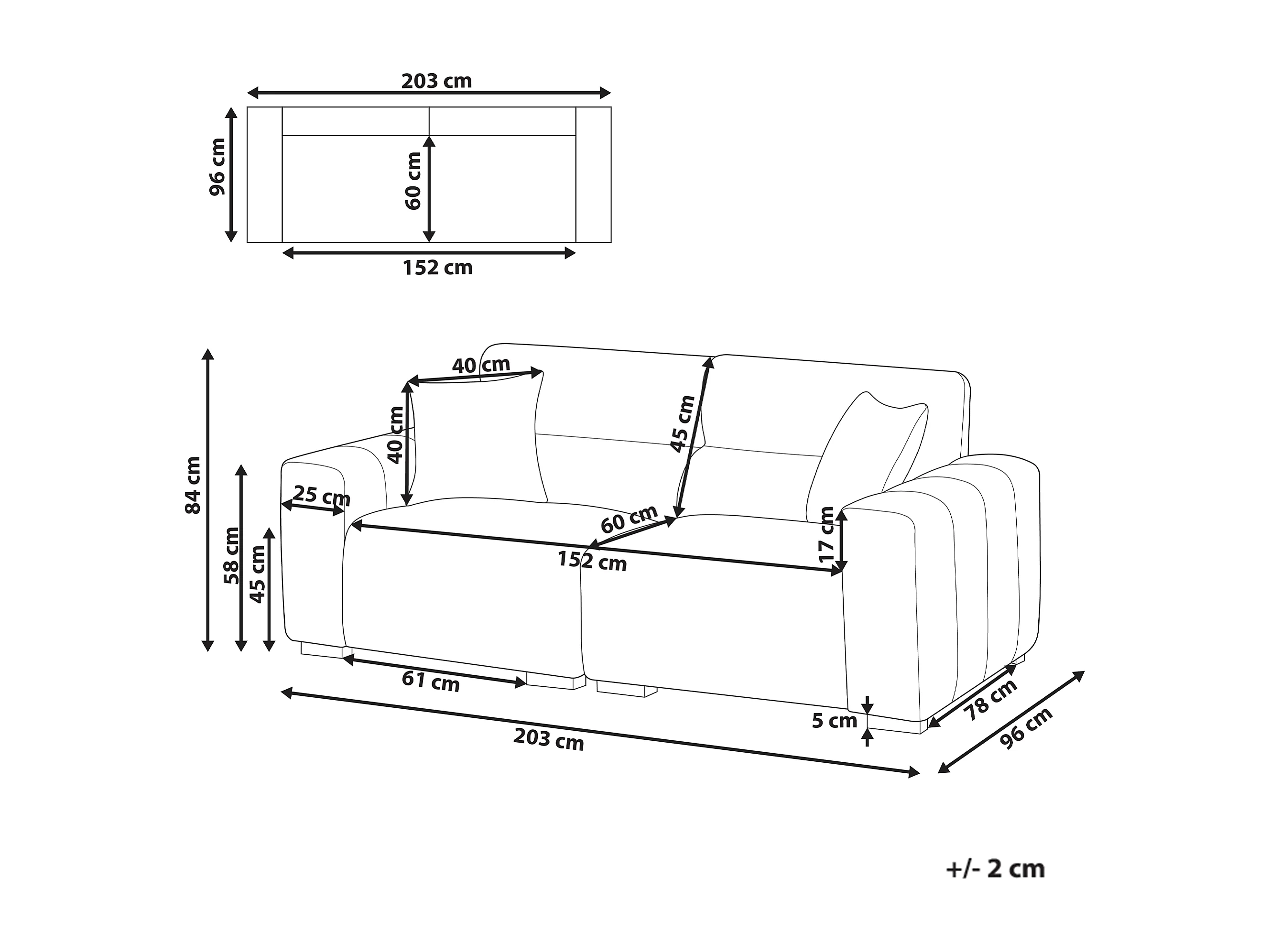 Sofá FAUSKAN Tecido Preto 3 lugares