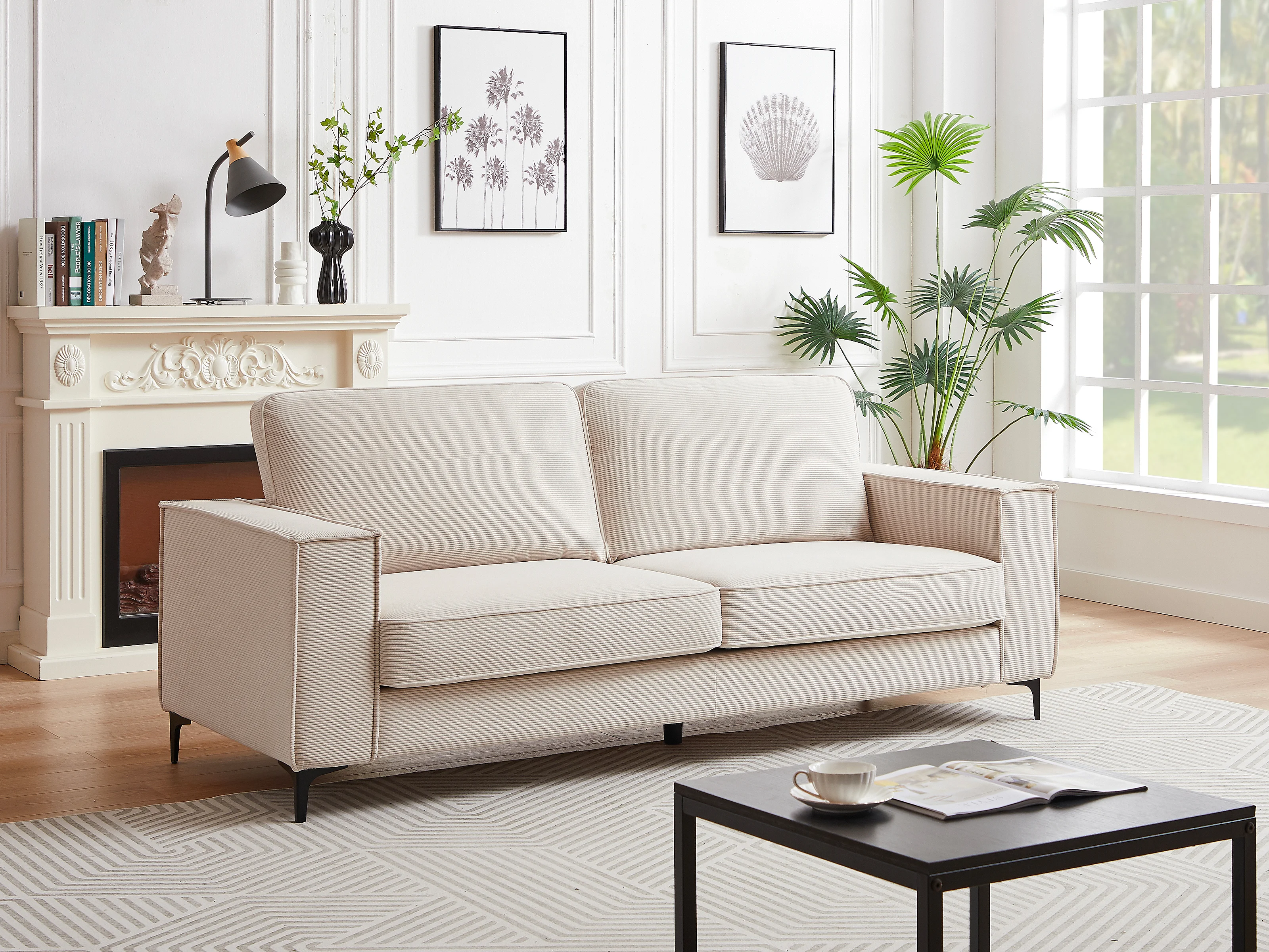 Sofá de 3 lugares em veludo canelado bege - OLMEDA